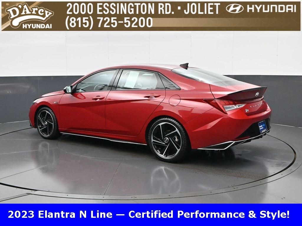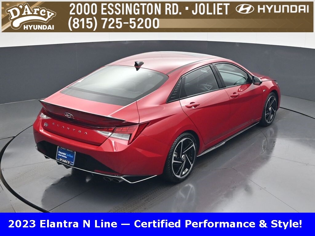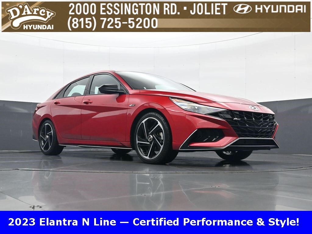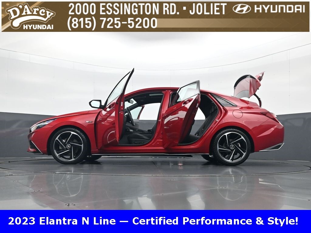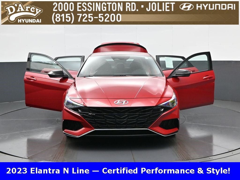 ONE OWNER LOCAL TRADE!, LOW MILES!, GREAT VEHICLE HISTORY!, REMAINING FULL FACTORY WARRANTY!, NAVIGATION!, SUNROOF!, LEATHER!, BOUGHT HERE SERVICED HERE!, HYUNDAI CERTIFIED!, FULLY SERVICED AND READY TO GO!. Certified. Scarlet Red Pearl 2023 Hyundai Elantra N Line FWD 7-Speed Dual Clutch DCT I4