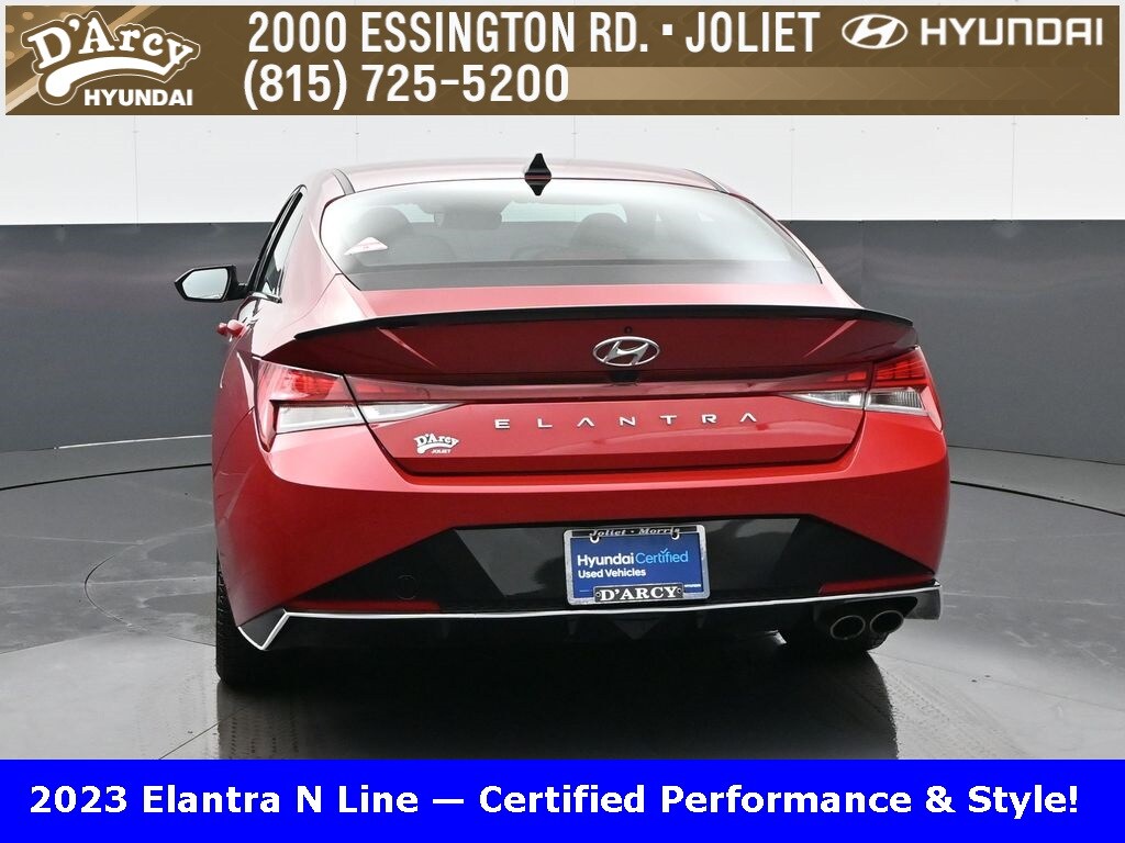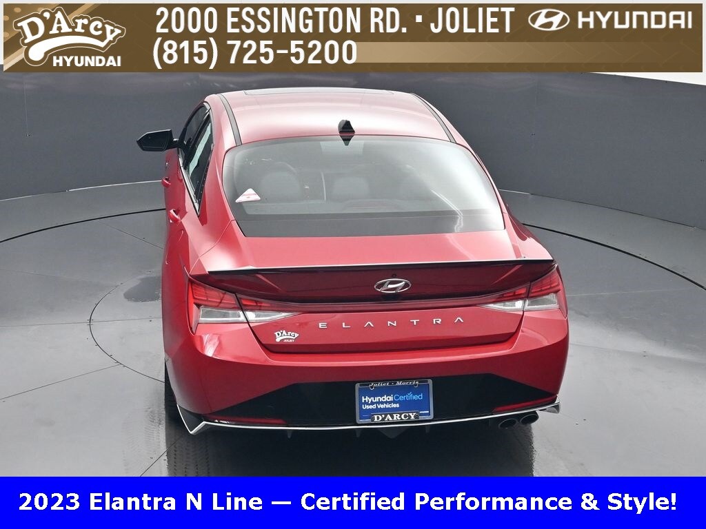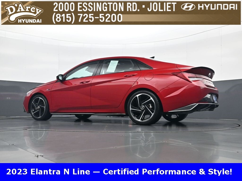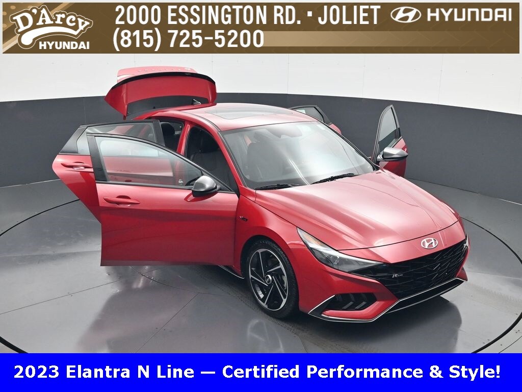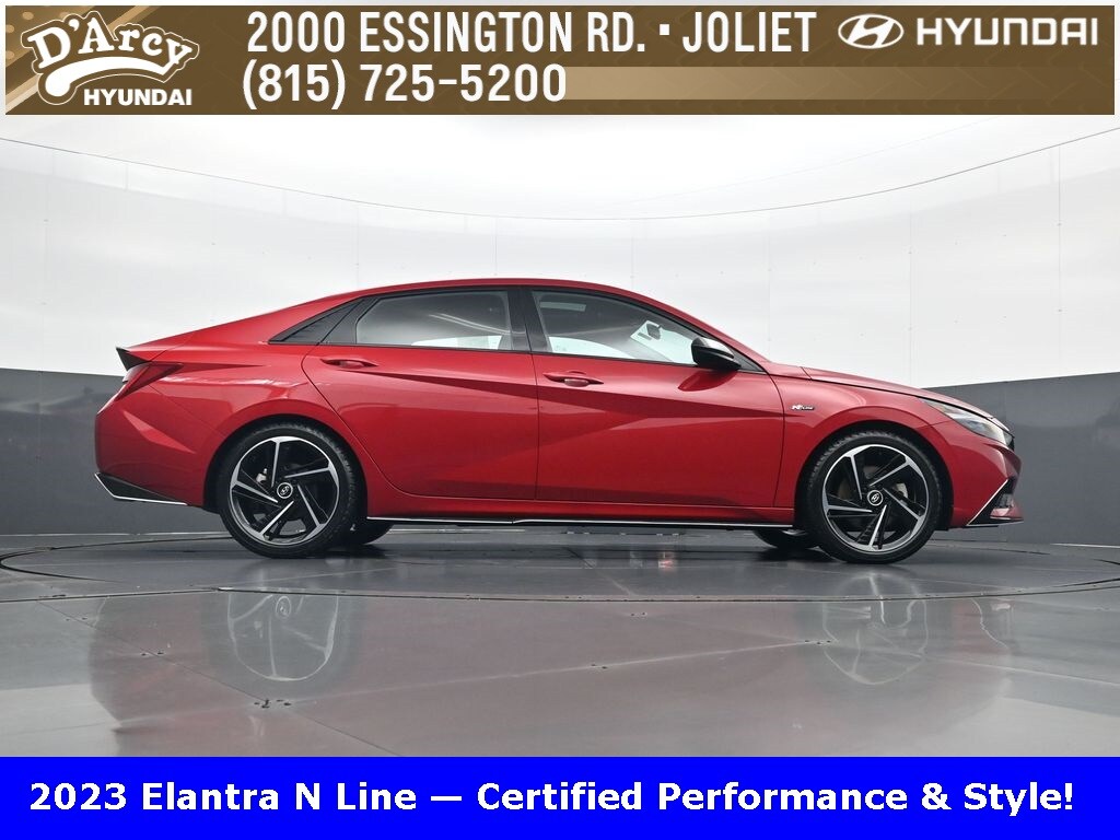 ONE OWNER LOCAL TRADE!, LOW MILES!, GREAT VEHICLE HISTORY!, REMAINING FULL FACTORY WARRANTY!, NAVIGATION!, SUNROOF!, LEATHER!, BOUGHT HERE SERVICED HERE!, HYUNDAI CERTIFIED!, FULLY SERVICED AND READY TO GO!. Certified. Scarlet Red Pearl 2023 Hyundai Elantra N Line FWD 7-Speed Dual Clutch DCT I4