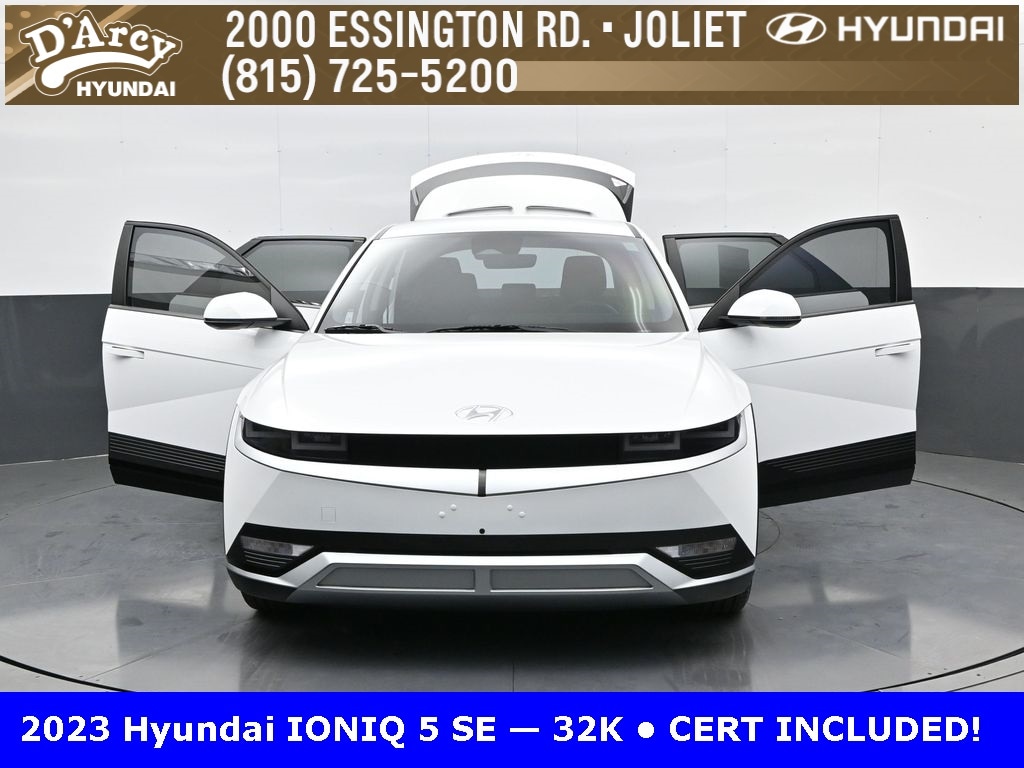 ONE OWNER LOCAL TRADE!, LOW MILES!, GREAT VEHICLE HISTORY!, REMAINING FULL FACTORY WARRANTY!, BOUGHT HERE SERVICED HERE!, HYUNDAI CERTIFIED!, FULLY SERVICED AND READY TO GO!. Certified. Atlas White 2023 Hyundai IONIQ 5 SE AWD 1-Speed Automatic Electric Motor