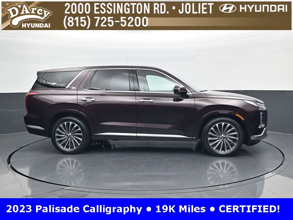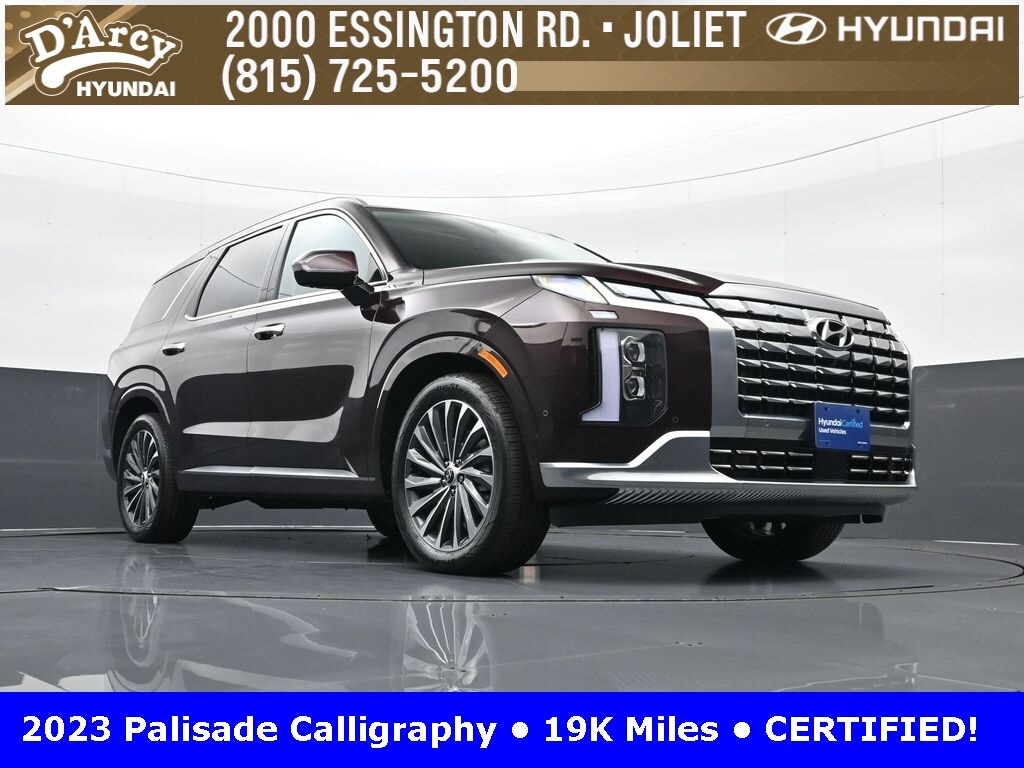 ONE OWNER LOCAL TRADE!, LOW MILES!, GREAT VEHICLE HISTORY!, REMAINING FULL FACTORY WARRANTY!, NAVIGATION!, SUNROOF!, LEATHER!, BOUGHT HERE SERVICED HERE!, HYUNDAI CERTIFIED!, FULLY SERVICED AND READY TO GO!. Certified. Sierra Burgundy 2023 Hyundai Palisade Calligraphy AWD 8-Speed Automatic with SHIFTRONIC V6