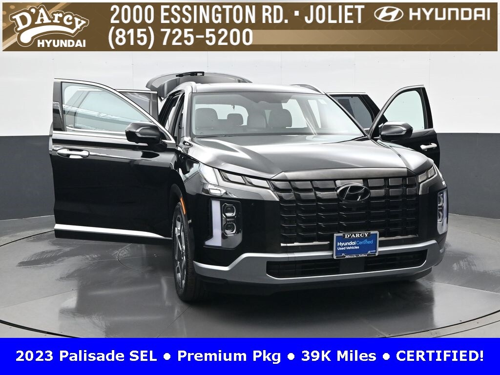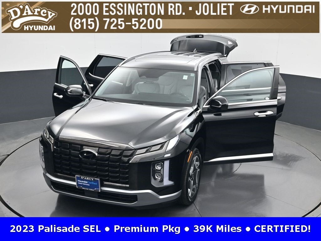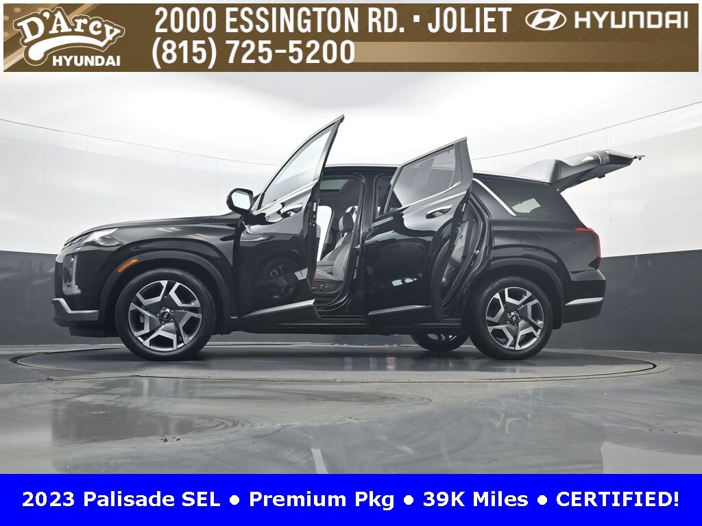 ONE OWNER LOCAL TRADE!, LOW MILES!, GREAT VEHICLE HISTORY!, REMAINING FULL FACTORY WARRANTY!, SUNROOF!, LEATHER!, BOUGHT HERE SERVICED HERE!, HYUNDAI CERTIFIED!, FULLY SERVICED AND READY TO GO!. Certified. Recent Arrival! Abyss Black Pearl 2023 Hyundai Palisade SEL AWD 8-Speed Automatic with SHIFTRONIC V6