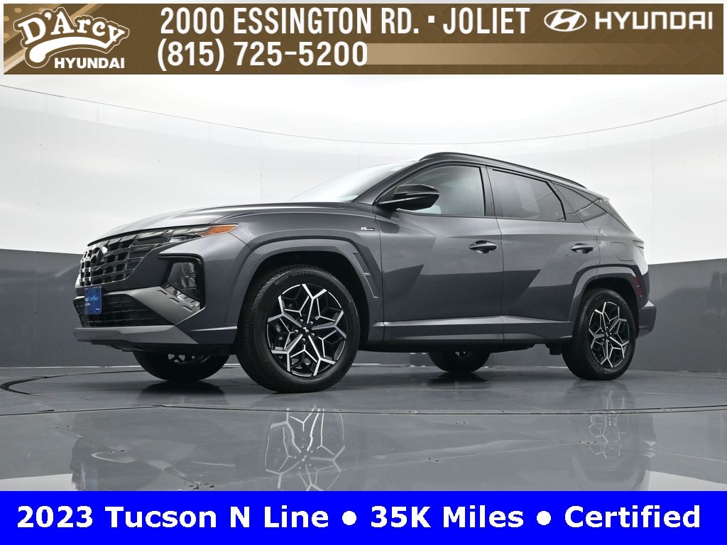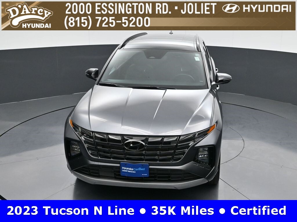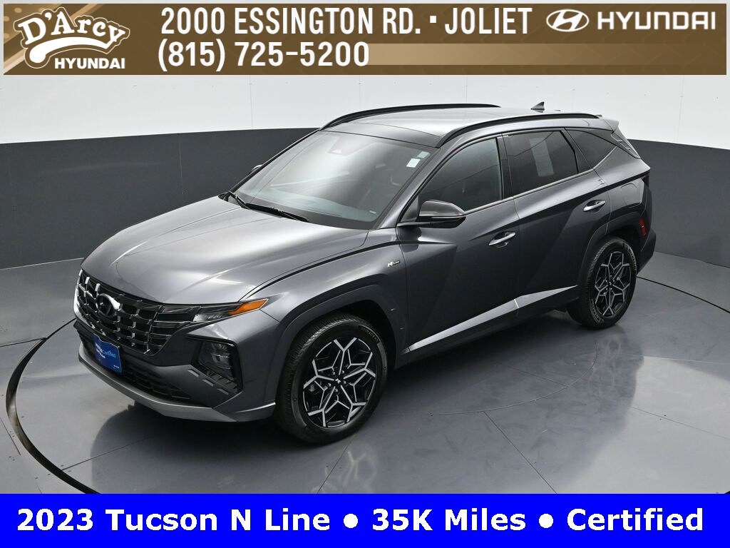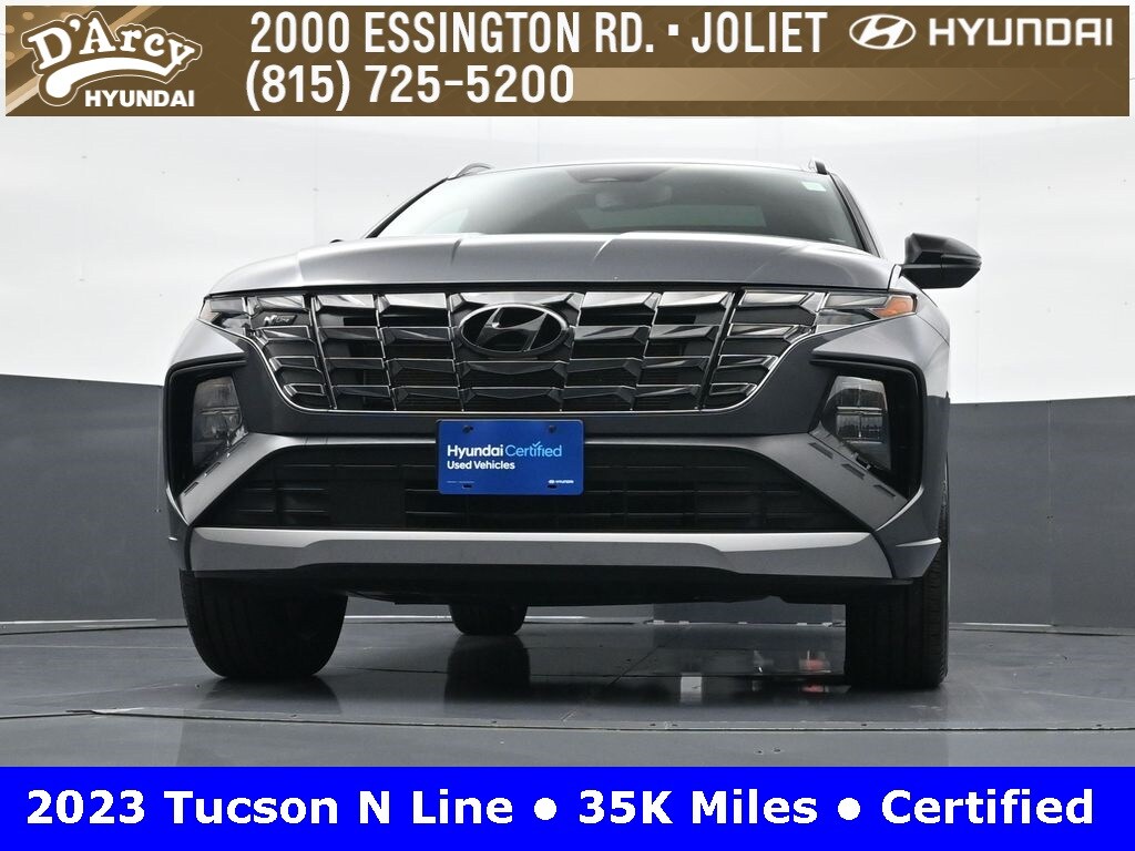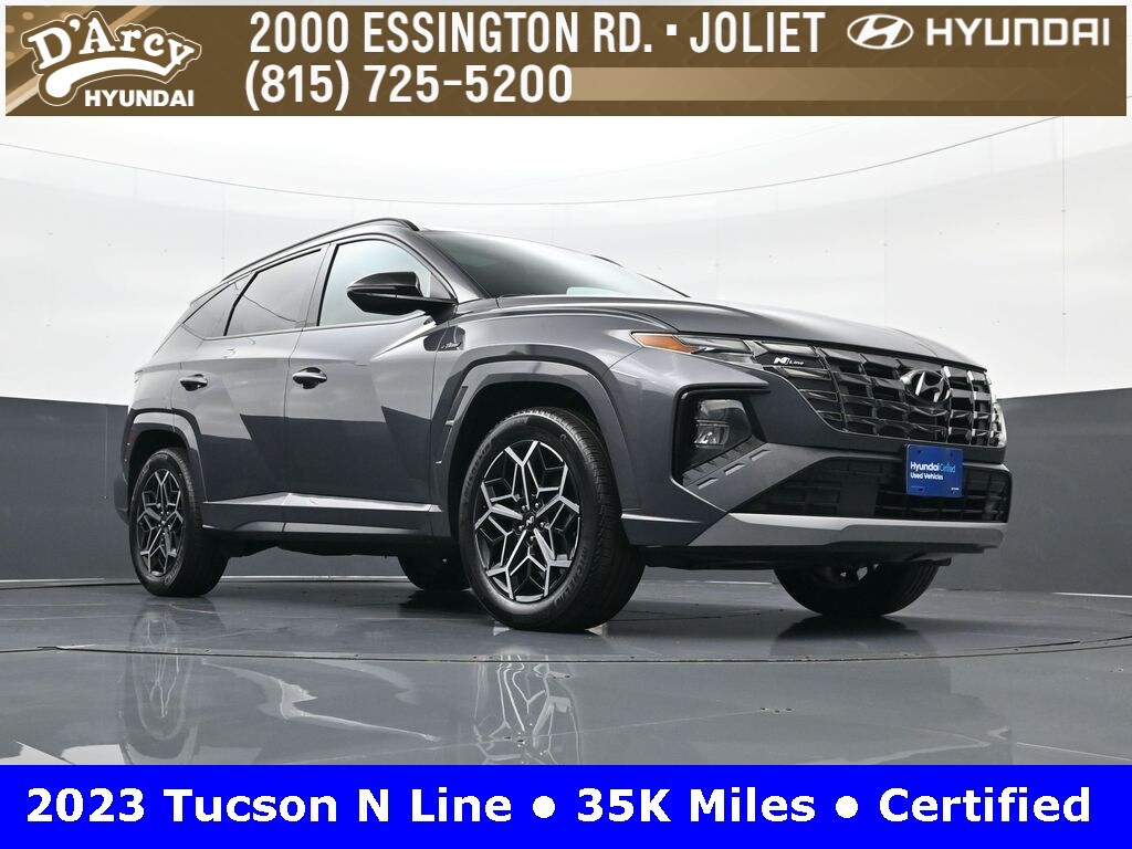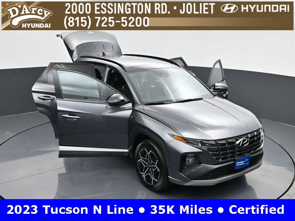 ONE OWNER LOCAL TRADE!, LOW MILES!, GREAT VEHICLE HISTORY!, REMAINING FULL FACTORY WARRANTY!, NAVIGATION!, SUNROOF!, LEATHER!, BOUGHT HERE SERVICED HERE!, HYUNDAI CERTIFIED!, FULLY SERVICED AND READY TO GO!. Certified. Portofino Gray 2023 Hyundai Tucson N Line AWD 8-Speed Automatic with SHIFTRONIC 2.5L I4 DGI DOHC 16V LEV3-ULEV70 187hp