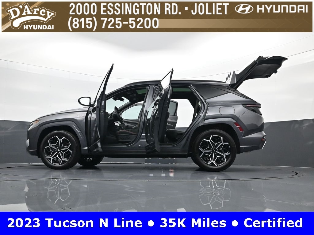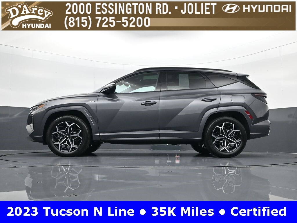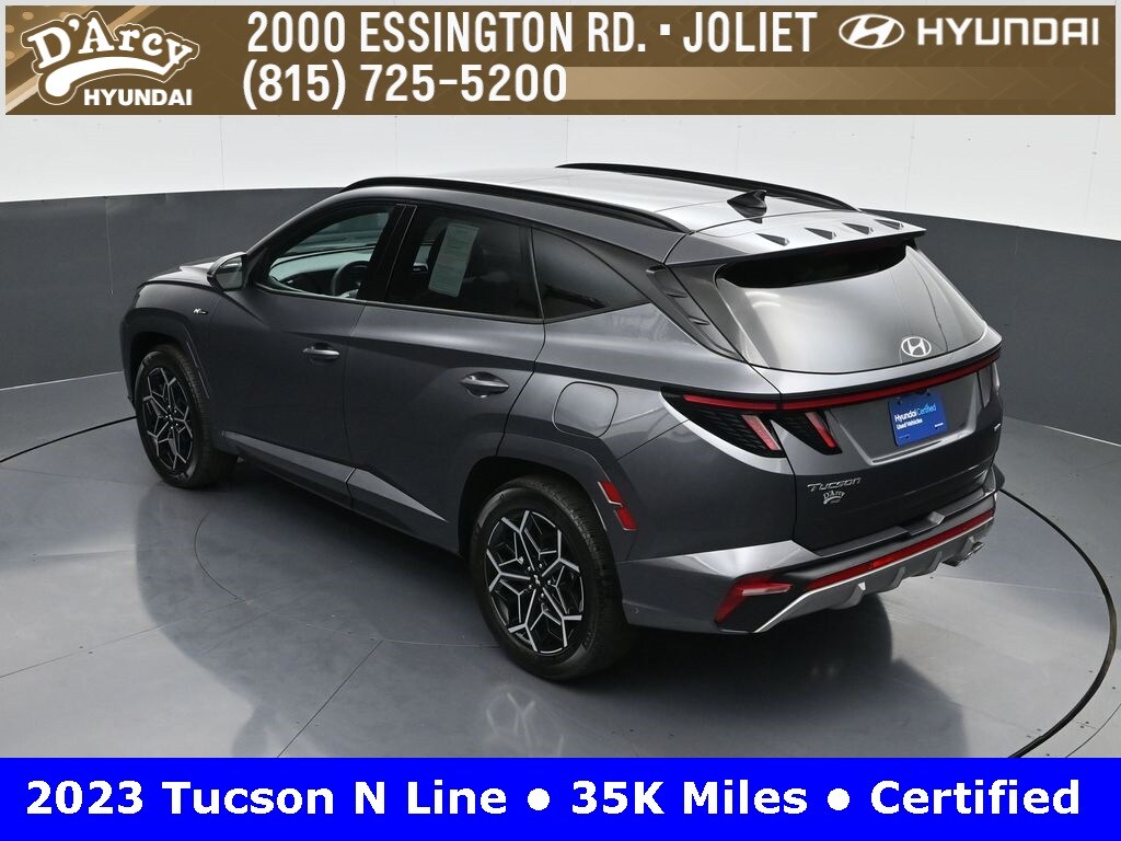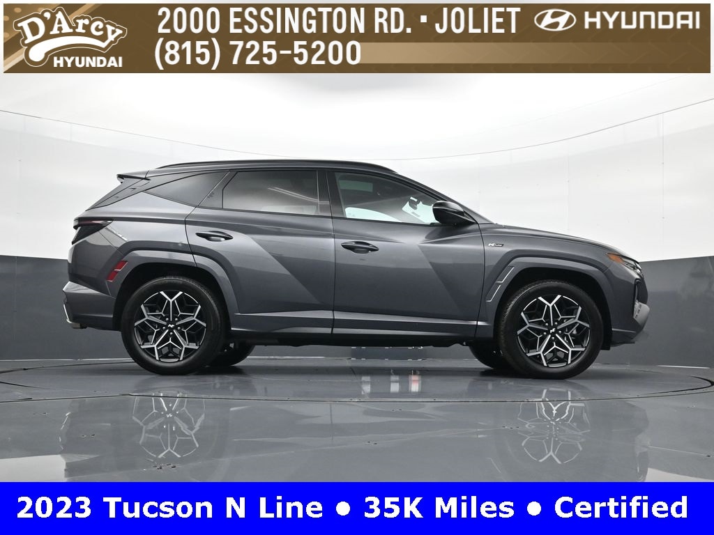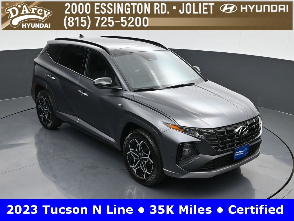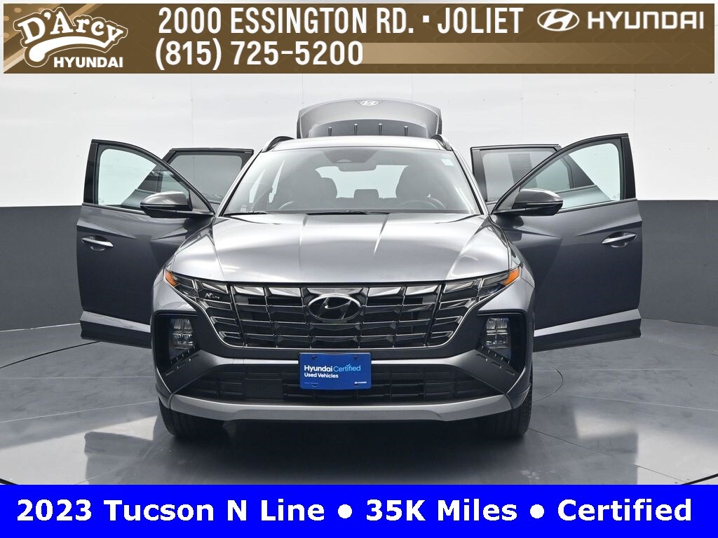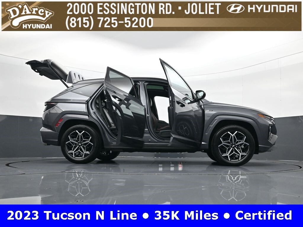 ONE OWNER LOCAL TRADE!, LOW MILES!, GREAT VEHICLE HISTORY!, REMAINING FULL FACTORY WARRANTY!, NAVIGATION!, SUNROOF!, LEATHER!, BOUGHT HERE SERVICED HERE!, HYUNDAI CERTIFIED!, FULLY SERVICED AND READY TO GO!. Certified. Portofino Gray 2023 Hyundai Tucson N Line AWD 8-Speed Automatic with SHIFTRONIC 2.5L I4 DGI DOHC 16V LEV3-ULEV70 187hp