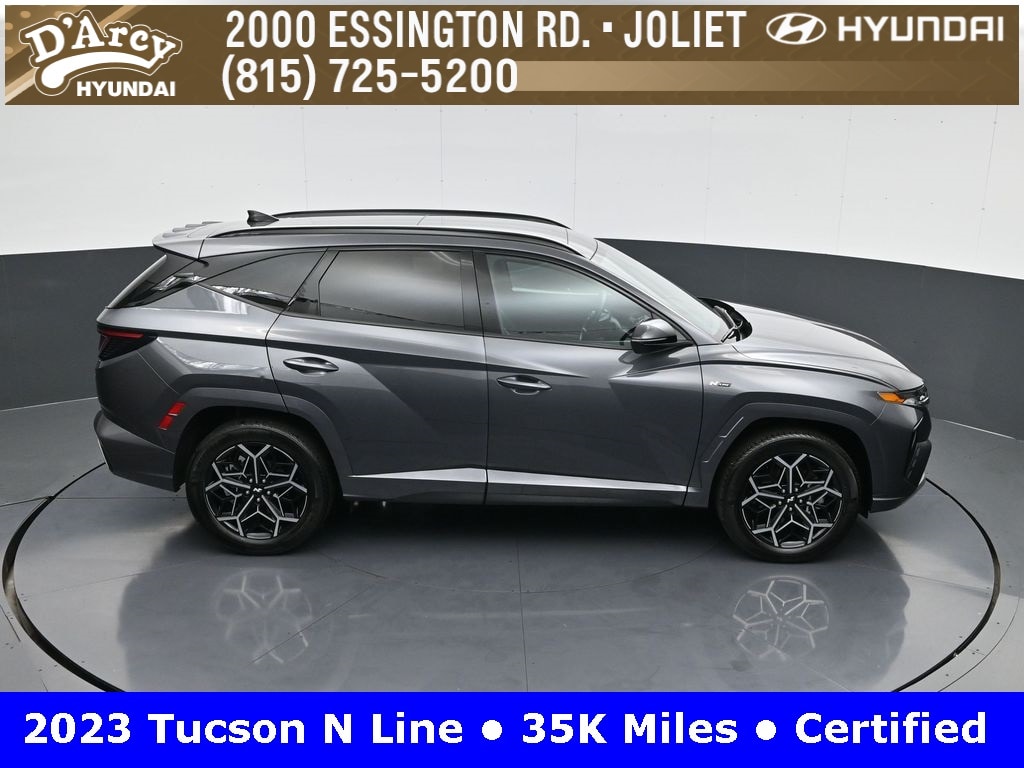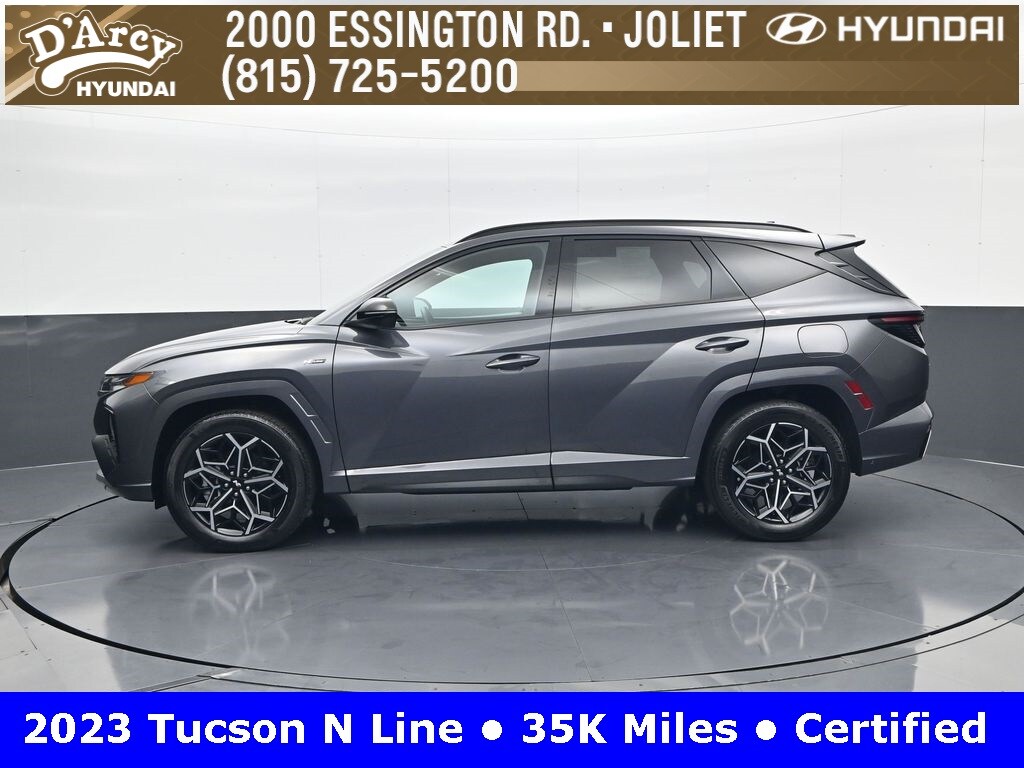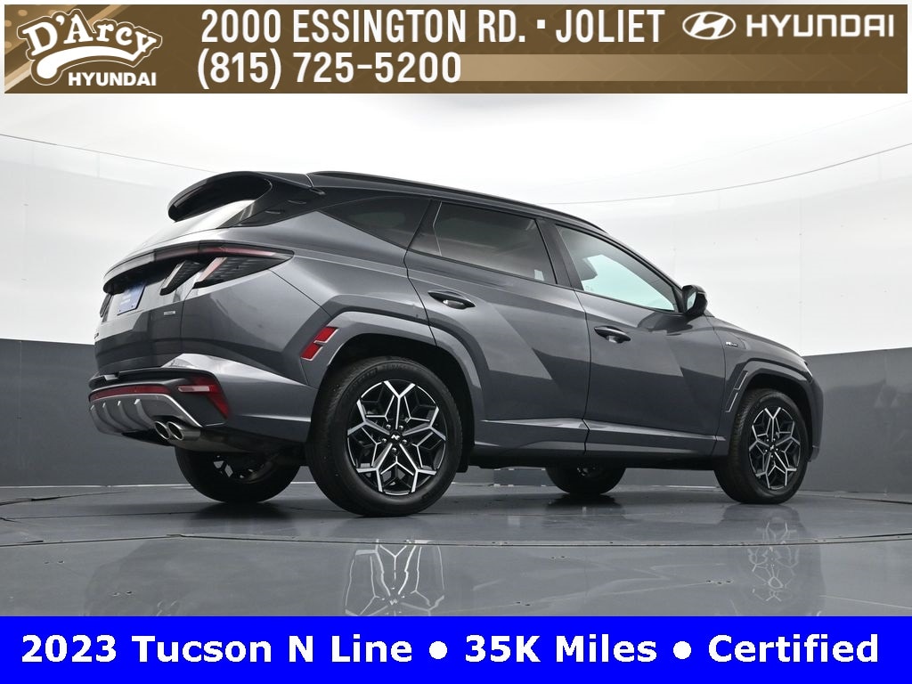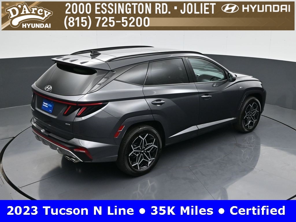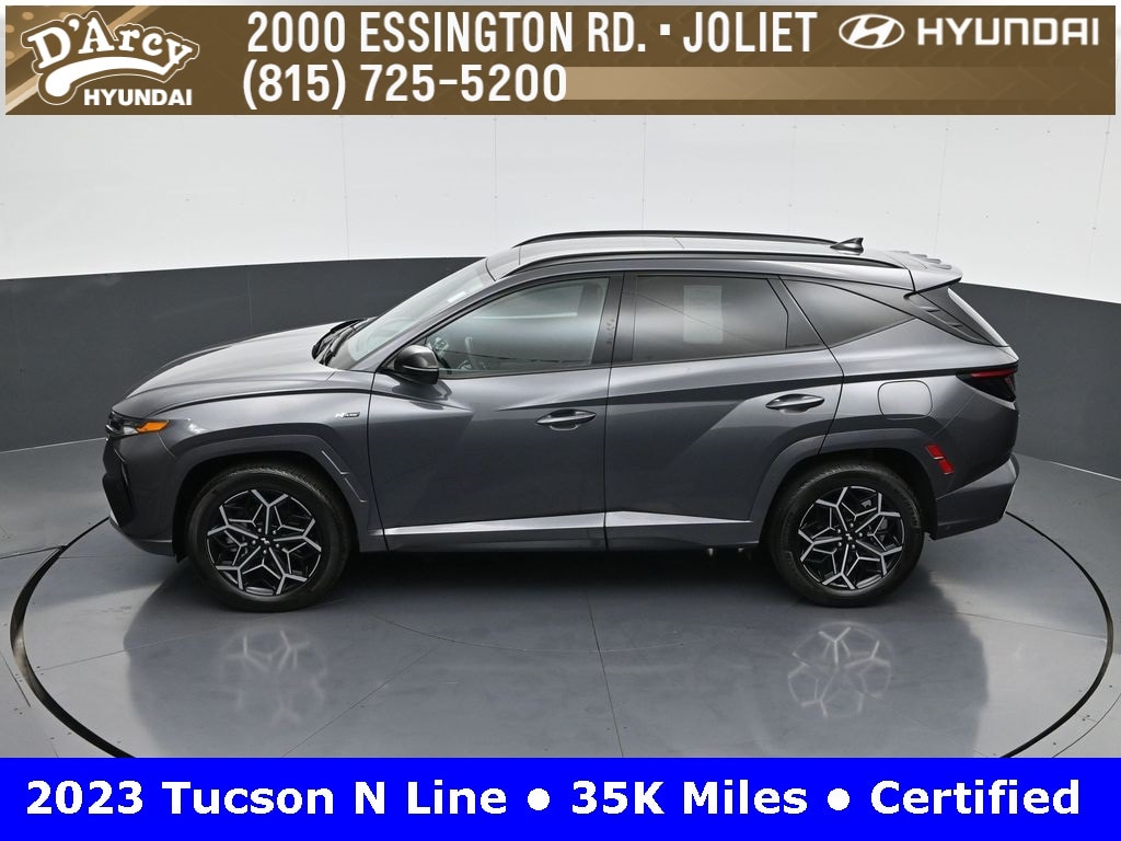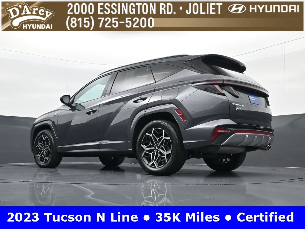 ONE OWNER LOCAL TRADE!, LOW MILES!, GREAT VEHICLE HISTORY!, REMAINING FULL FACTORY WARRANTY!, NAVIGATION!, SUNROOF!, LEATHER!, BOUGHT HERE SERVICED HERE!, HYUNDAI CERTIFIED!, FULLY SERVICED AND READY TO GO!. Certified. Portofino Gray 2023 Hyundai Tucson N Line AWD 8-Speed Automatic with SHIFTRONIC 2.5L I4 DGI DOHC 16V LEV3-ULEV70 187hp
