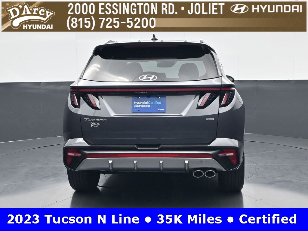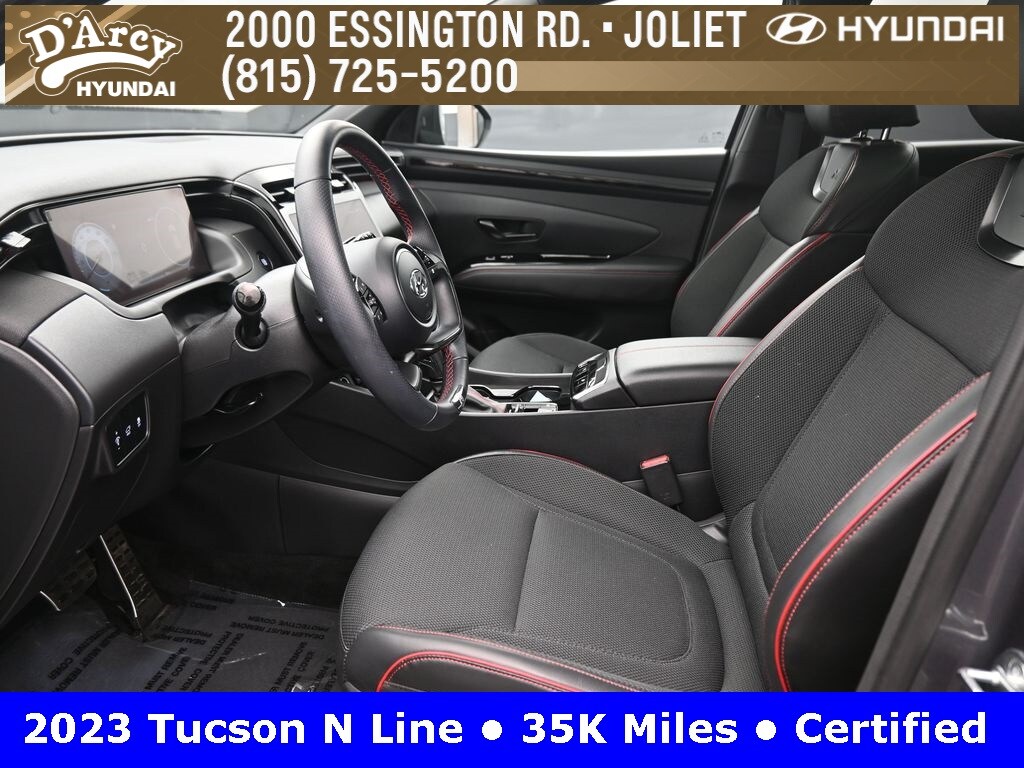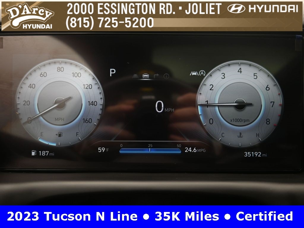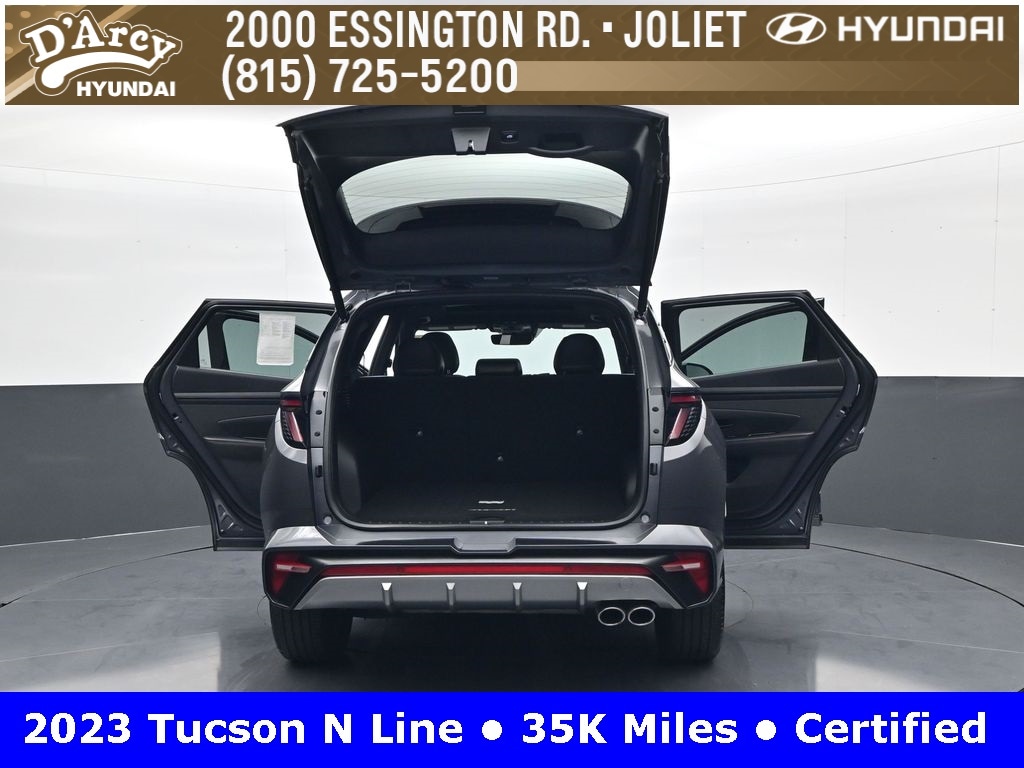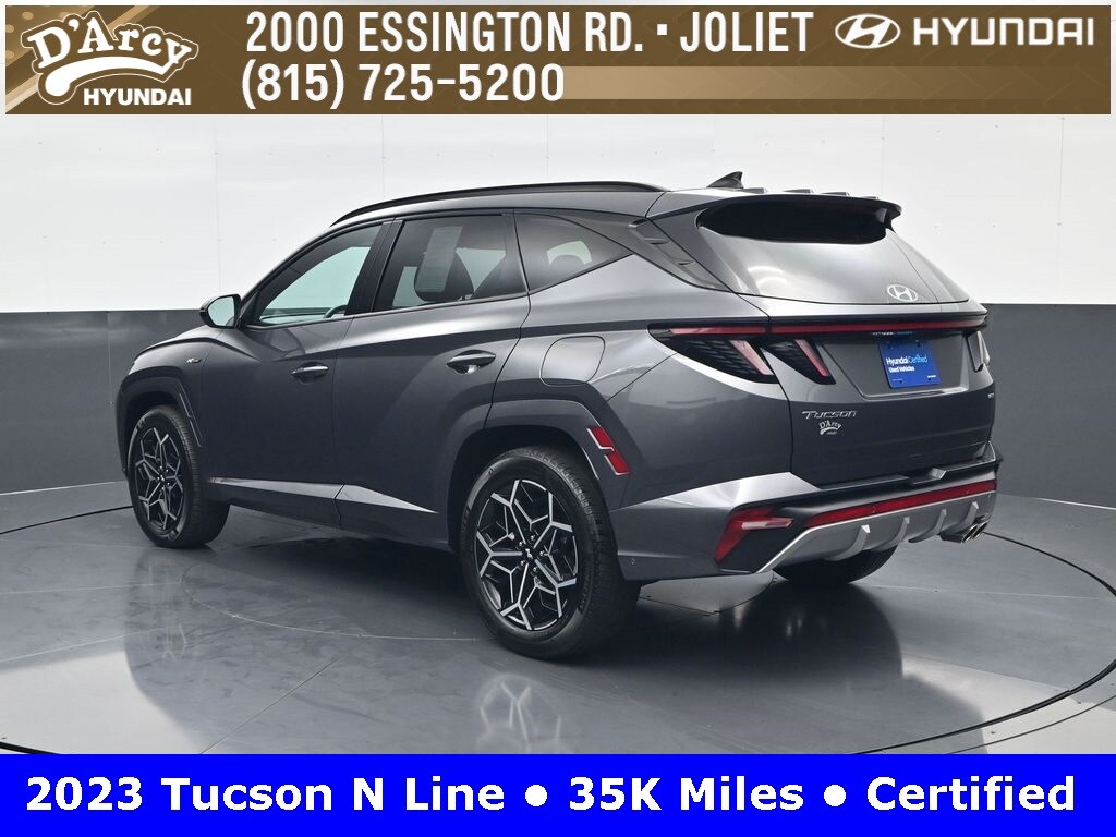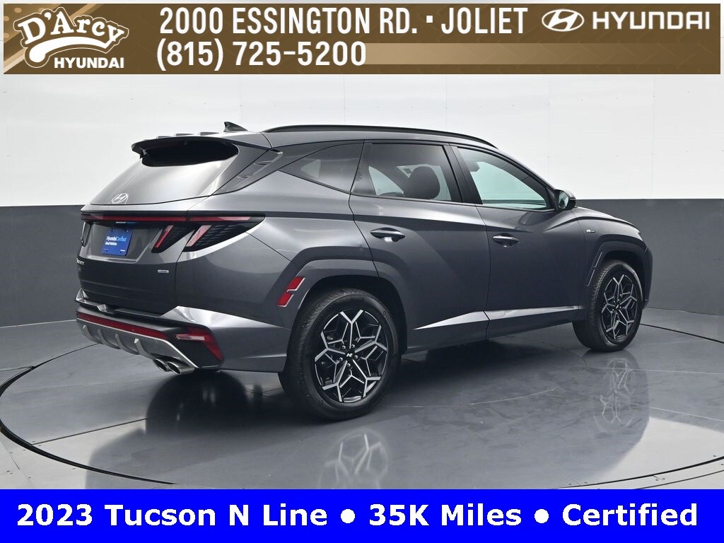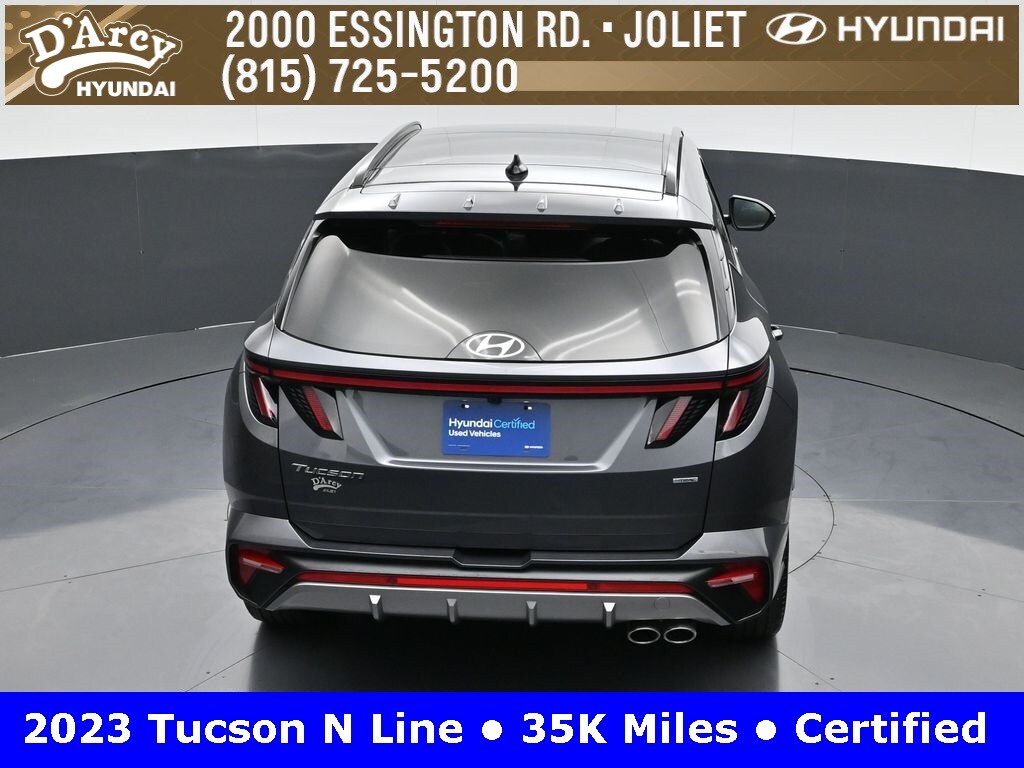 ONE OWNER LOCAL TRADE!, LOW MILES!, GREAT VEHICLE HISTORY!, REMAINING FULL FACTORY WARRANTY!, NAVIGATION!, SUNROOF!, LEATHER!, BOUGHT HERE SERVICED HERE!, HYUNDAI CERTIFIED!, FULLY SERVICED AND READY TO GO!. Certified. Portofino Gray 2023 Hyundai Tucson N Line AWD 8-Speed Automatic with SHIFTRONIC 2.5L I4 DGI DOHC 16V LEV3-ULEV70 187hp