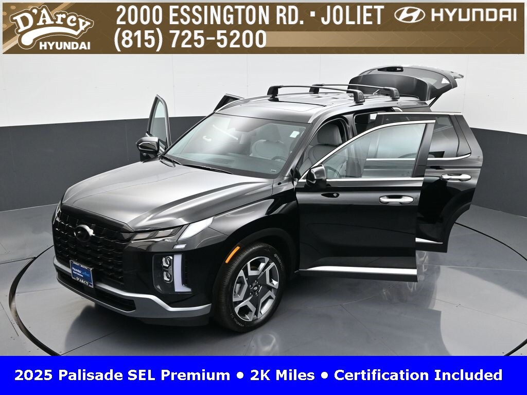 ONE OWNER LOCAL TRADE!, LOW MILES!, GREAT VEHICLE HISTORY!, REMAINING FULL FACTORY WARRANTY!, SUNROOF!, LEATHER!, BOUGHT HERE SERVICED HERE!, HYUNDAI CERTIFIED!, FULLY SERVICED AND READY TO GO!. Certified. Abyss Black Pearl 2025 Hyundai Palisade SEL Premium AWD 8-Speed Automatic with SHIFTRONIC V6