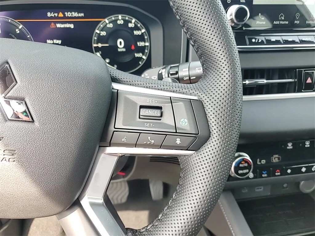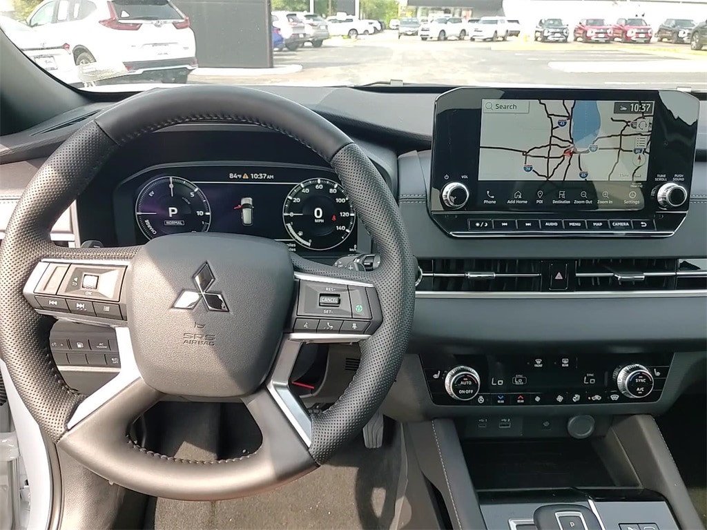 This vehicle comes equipped with 2.4L 4-Cylinder DI DOHC, 3rd row seats: split-bench, 4-Wheel Disc Brakes, ABS brakes, Air Conditioning, Alloy wheels, AM/FM radio: SiriusXM, Android Auto & Apple CarPlay, Auto High-beam Headlights, Auto-dimming Rear-View mirror, Automatic temperature control, Brake assist, Bumpers: body-color, Driver door bin, Driver vanity mirror, Dual front impact airbags, Dual front side impact airbags, Electronic Stability Control, Emergency communication system: Mitsubishi Connect w/ 24-month trial, Four wheel independent suspension, Front anti-roll bar, Front Bucket Seats, Front Center Armrest w/Storage, Front dual zone A/C, Front fog lights, Front reading lights, Fully automatic headlights, Headlight cleaning, Heated door mirrors, Heated Front Bucket Seats, Heated front seats, Heated rear seats, Heated steering wheel, Illuminated entry, Knee airbag, Leather Shift Knob, Leather steering wheel, Low tire pressure warning, Memory seat, Navigation System, Occupant sensing airbag, Outside temperature display, Overhead airbag, Overhead console, Panic alarm, Passenger door bin, Passenger vanity mirror, Power door mirrors, Power driver seat, Power Liftgate, Power moonroof, Power passenger seat, Power steering, Power windows, Radio data system, Radio: AM/FM 9" Smartphone Link Display Audio, Rain sensing wipers, Rear air conditioning, Rear anti-roll bar, Rear seat center armrest, Rear side impact airbag, Rear window defroster, Rear window wiper, Reclining 3rd row seat, Remote keyless entry, Security system, Speed control, Speed-Sensitive Wipers, Split folding rear seat, Spoiler, Steering wheel mounted audio controls, Tachometer, Telescoping steering wheel, Tilt steering wheel, Traction control, Trip computer, Turn signal indicator mirrors, and Variably intermittent wipers