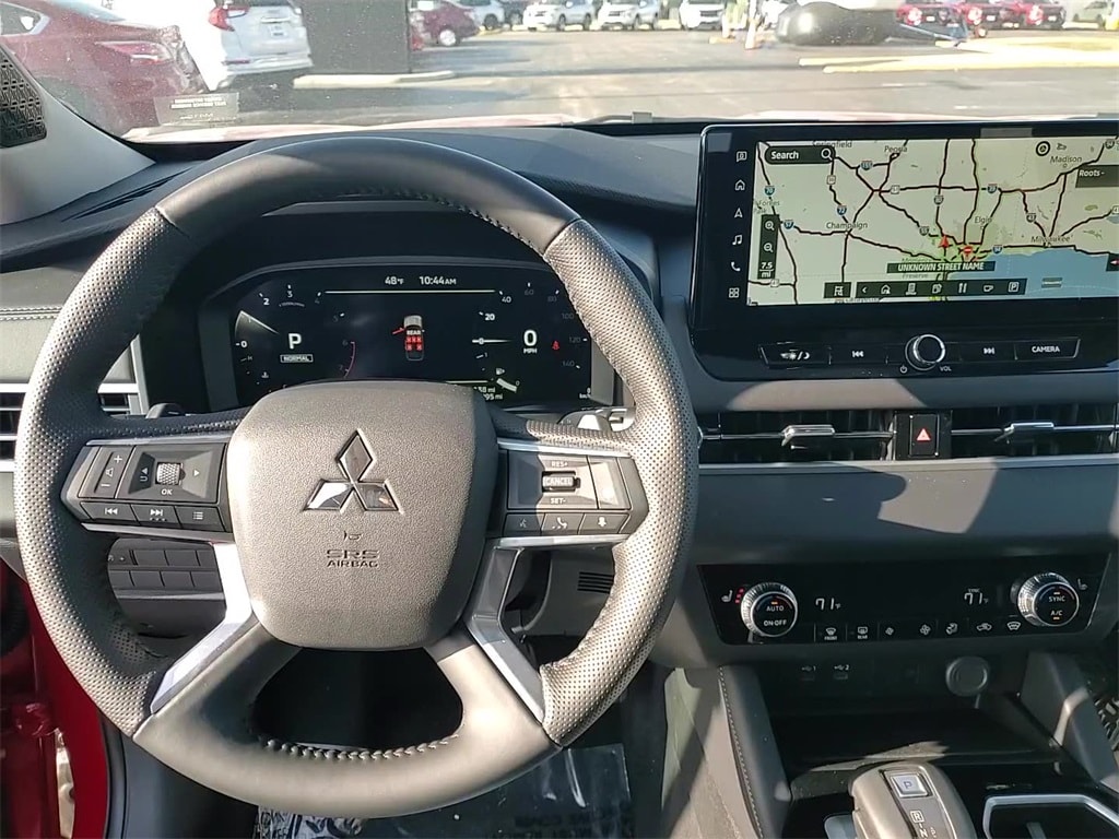 This vehicle comes equipped with 4WD, 3rd row seats: split-bench, 4-Wheel Disc Brakes, 8 Speakers, ABS brakes, Accessory Tonneau Cover, Air Conditioning, Alloy wheels, AM/FM radio: SiriusXM, Android Auto & Apple CarPlay, Auto High-beam Headlights, Auto-dimming Rear-View mirror, Automatic temperature control, Brake assist, Bumpers: body-color, Driver door bin, Driver vanity mirror, Dual front impact airbags, Dual front side impact airbags, Electronic Stability Control, Emergency communication system: Mitsubishi Connect w/ 24-month trial, Exterior Parking Camera Rear, Four wheel independent suspension, Front anti-roll bar, Front Bucket Seats, Front Center Armrest w/Storage, Front dual zone A/C, Front fog lights, Front reading lights, Fully automatic headlights, Garage door transmitter: HomeLink, Headlight cleaning, Heated door mirrors, Heated Front Bucket Seats, Heated front seats, Illuminated entry, Knee airbag, Leather Shift Knob, Leather steering wheel, Low tire pressure warning, Navigation System, Occupant sensing airbag, Outside temperature display, Overhead airbag, Overhead console, Panic alarm, Passenger door bin, Passenger vanity mirror, Power door mirrors, Power driver seat, Power Liftgate, Power steering, Power windows, Radio data system, Radio: AM/FM 12.3" Navigation w/Smartphone-Link, Rain sensing wipers, Rear anti-roll bar, Rear seat center armrest, Rear side impact airbag, Rear window defroster, Rear window wiper, Reclining 3rd row seat, Remote keyless entry, Security system, Speed control, Speed-Sensitive Wipers, Split folding rear seat, Spoiler, Steering wheel mounted audio controls, Synthetic Leather Seating Surfaces, Tachometer, Telescoping steering wheel, Tilt steering wheel, Traction control, Trip computer, Turn signal indicator mirrors, and Variably intermittent wipers