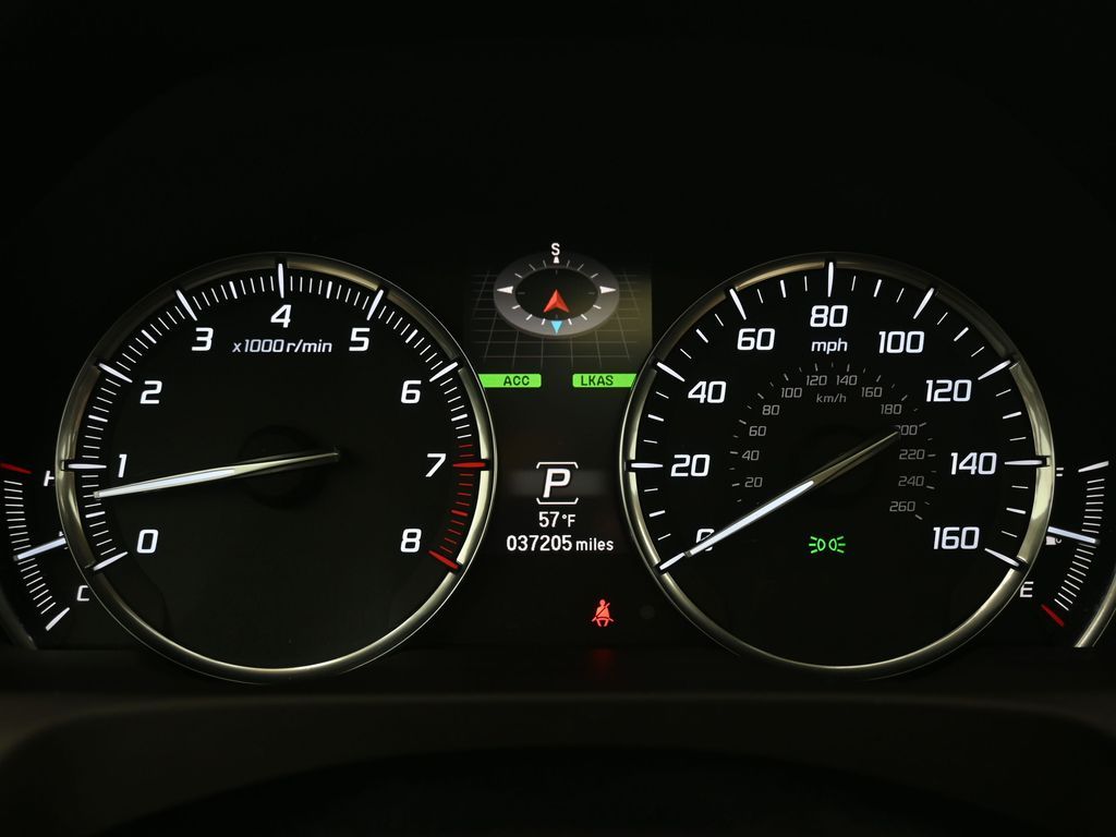10 Speakers, 4-Wheel Disc Brakes, ABS brakes, Acura Navigation System w/3D View, Air Conditioning, Alloy wheels, AM/FM radio, Anti-whiplash front head restraints, Auto High-beam Headlights, Auto-dimming Rear-View mirror, Automatic temperature control, Brake assist, Bumpers: body-color, CD player, Compass, Delay-off headlights, Driver door bin, Driver vanity mirror, Drivers Seat Power Thigh Extension, Dual front impact airbags, Dual front side impact airbags, Electronic Stability Control, Emergency communication system: AcuraLink, Exterior Parking Camera Rear, Four wheel independent suspension, Front anti-roll bar, Front Bucket Seats, Front Center Armrest w/Storage, Front dual zone A/C, Front reading lights, Garage door transmitter, Heated door mirrors, Heated Front Seats, Heated front seats, HVAC memory, Illuminated entry, Knee airbag, Lane Departure Warning System, Leather steering wheel, Low tire pressure warning, Memory seat, Navigation System, Occupant sensing airbag, Outside temperature display, Overhead airbag, Panic alarm, Passenger door bin, Passenger vanity mirror, Power door mirrors, Power driver seat, Power moonroof, Power passenger seat, Power steering, Power windows, Premium audio system: Acura/ELS Surround, Premium Milano Leather-Trimmed Sport Seats, Radio data system, Radio: ELS Studio Premium Audio System, Rain sensing wipers, Rear anti-roll bar, Rear reading lights, Rear seat center armrest, Rear window defroster, Remote keyless entry, Security system, Speed control, Speed-sensing steering, Speed-Sensitive Wipers, Split folding rear seat, Spoiler, Sport steering wheel, Steering wheel mounted audio controls, Tachometer, Telescoping steering wheel, Tilt steering wheel, Traction control, Trip computer, Turn signal indicator mirrors, Variably intermittent wipers, Ventilated front seats, and Wheels: 18" x 7.5" Machine-Finished Aluminum Alloy.