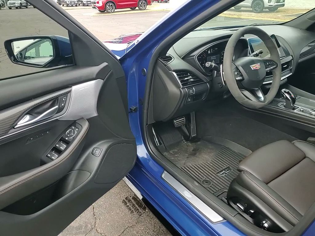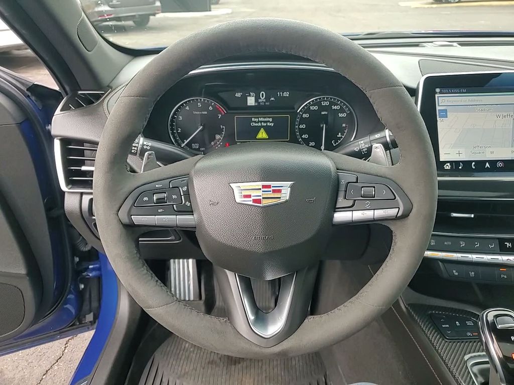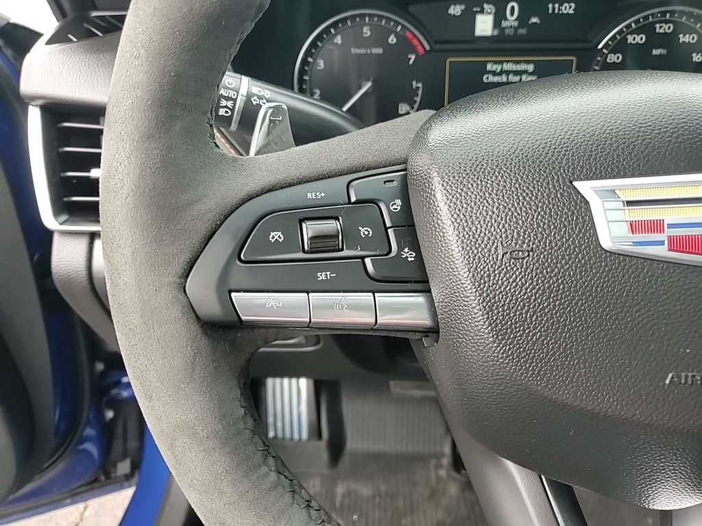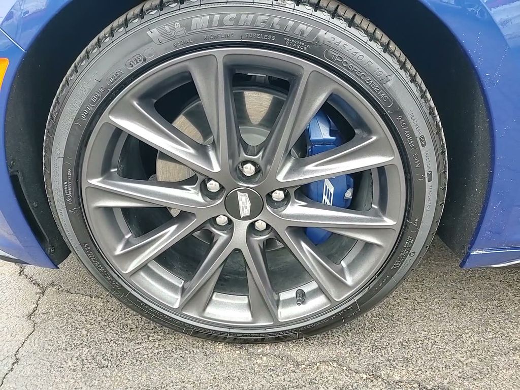 This vehicle comes equipped with Climate Package (Driver Power Lumbar Massage Seat, Front Passenger Power Lumbar Massage Seat, Heated Driver & Front Passenger Seats, Heated Steering Wheel, and Ventilated Driver & Front Passenger Seats), Navigation & Bose Premium Audio Package, Preferred Equipment Group 1SE (4-Wheel Antilock 4-Wheel Disc Brakes, Body-Color Heated Pwr-Adjustable Outside Mirrors, Dual Diagonal Color Driver Information Center, Front & Rear Park Assist, HD Rear Vision Camera, Inside Rear-View Auto-Dimming Mirror, Lane Keep Assist w/Lane Departure Warning, LED Reflective Windshield Alert, and Ride & Handling Suspension), Radio: Cadillac User Experience w/Embedded Nav (Bose Performance Series Premium 15-Speaker System and SiriusXM w/360L), 3 USB Ports, 4-Wheel Disc Brakes, 9 Speakers, ABS brakes, Air Conditioning, Alloy wheels, AM/FM radio: SiriusXM with 360L, Apple CarPlay/Android Auto, Auto High-beam Headlights, Auto-dimming door mirrors, Auto-dimming Rear-View mirror, Automatic Stop/Start w/Disable, Automatic temperature control, Blue Brembo Calipers, Brake assist, Brembo V Performance Front Brakes (Blue), Bumpers: body-color, Compass, Delay-off headlights, Driver 4-Way Power Lumbar Seat Adjuster, Driver door bin, Driver vanity mirror, Dual front impact airbags, Dual front side impact airbags, Electronic Stability Control, Emergency communication system: OnStar and Cadillac connected services capable, Exterior Parking Camera Rear, Four wheel independent suspension, Front anti-roll bar, Front Bucket Seats, Front Center Armrest, Front dual zone A/C, Front Passenger 4-Way Power Lumbar Seat Adjuster, Front Passenger 8-Way Power Seat Adjuster, Front reading lights, Fully automatic headlights, Garage door transmitter, HD Radio, Heated door mirrors, Illuminated entry, Inteluxe Seating Surfaces, Knee airbag, Leather steering wheel, Low tire pressure warning, Memory seat, Occupant sensing airbag, Outside temperature display, Overhead airbag, Overhead console, Panic alarm, Passenger door bin, Passenger vanity mirror, Power door mirrors, Power driver seat, Power passenger seat, Power steering, Power windows, Premium 9-Speaker Audio System Feature, Radio data system, Radio: Cadillac User Experience, Rain sensing wipers, Rear anti-roll bar, Rear reading lights, Rear seat center armrest, Rear window defroster, Remote keyless entry, Speed control, Speed-sensing steering, Split folding rear seat, Spoiler, Steering wheel memory, Steering wheel mounted audio controls, Sueded Microfiber Shifter, Sueded Microfiber Steering Wheel, Tachometer, Teen Driver, Telescoping steering wheel, Tilt steering wheel, Traction control, Trip computer, Turn signal indicator mirrors, UltraView Dual Pane Sunroof, Variably intermittent wipers, Voltmeter, Wheels: 19" Alloy w/Pearl Nickel Finish, and Wheels: 19" Alloy w/Satin Graphite Finish