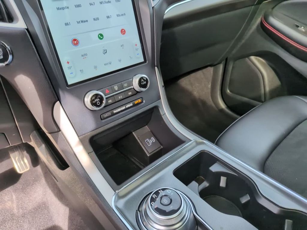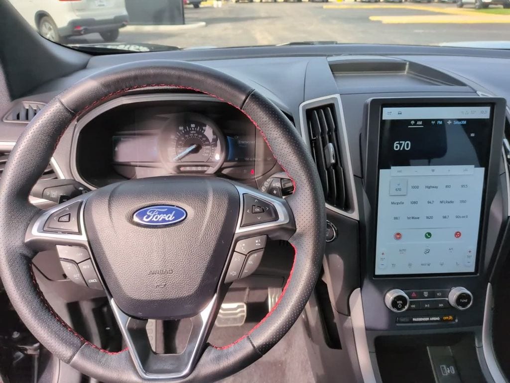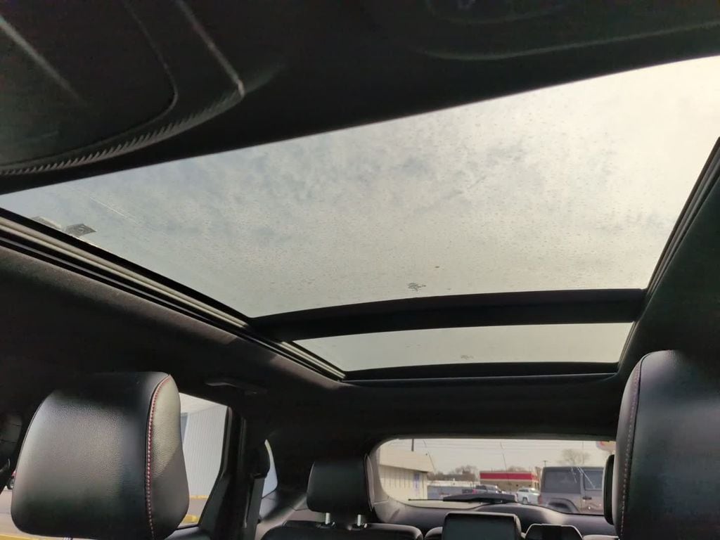 This vehicle comes equipped with Class II Trailer Tow Package, Equipment Group 250A, AWD, 3.80 Axle Ratio, 4-Wheel Disc Brakes, 6 Speakers, ABS brakes, ActiveX Seating Material Heated Bucket Seats, Air Conditioning, Alloy wheels, AM/FM radio: SiriusXM with 360L, Auto High-beam Headlights, Auto-dimming Rear-View mirror, Automatic temperature control, Brake assist, Bumpers: body-color, Compass, Delay-off headlights, Driver door bin, Driver vanity mirror, Dual front impact airbags, Dual front side impact airbags, Electronic Stability Control, Emergency communication system: SYNC 4 911 Assist, FordPass Connect, Four wheel independent suspension, Front anti-roll bar, Front Bucket Seats, Front Center Armrest w/Storage, Front dual zone A/C, Front fog lights, Front reading lights, Fully automatic headlights, Garage door transmitter, Heated door mirrors, Heated front seats, Heated Steering Wheel, Illuminated entry, Knee airbag, Low tire pressure warning, Occupant sensing airbag, Outside temperature display, Overhead airbag, Overhead console, Panic alarm, Panoramic Vista Roof, Passenger door bin, Passenger vanity mirror, Power door mirrors, Power driver seat, Power Liftgate, Power passenger seat, Power steering, Power windows, Radio: AM/FM Stereo/MP3 Capable, Rear anti-roll bar, Rear Parking Sensors, Rear reading lights, Rear seat center armrest, Rear window defroster, Rear window wiper, Remote keyless entry, Security system, SiriusXM w/360L, Speed control, Speed-Sensitive Wipers, Split folding rear seat, Spoiler, Steering wheel mounted audio controls, SYNC 4A w/Enhanced Voice Recognition, Tachometer, Telescoping steering wheel, Tilt steering wheel, Traction control, Trip computer, Variably intermittent wipers, and Wheels: 20" Premium Gloss Black-Painted Aluminum