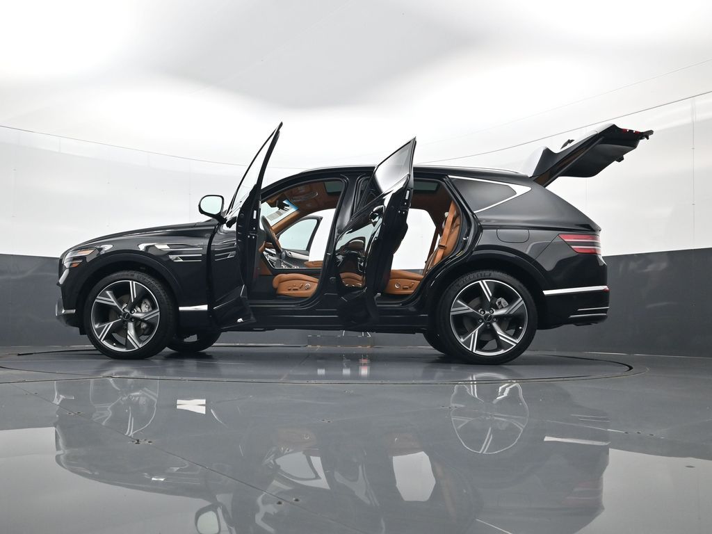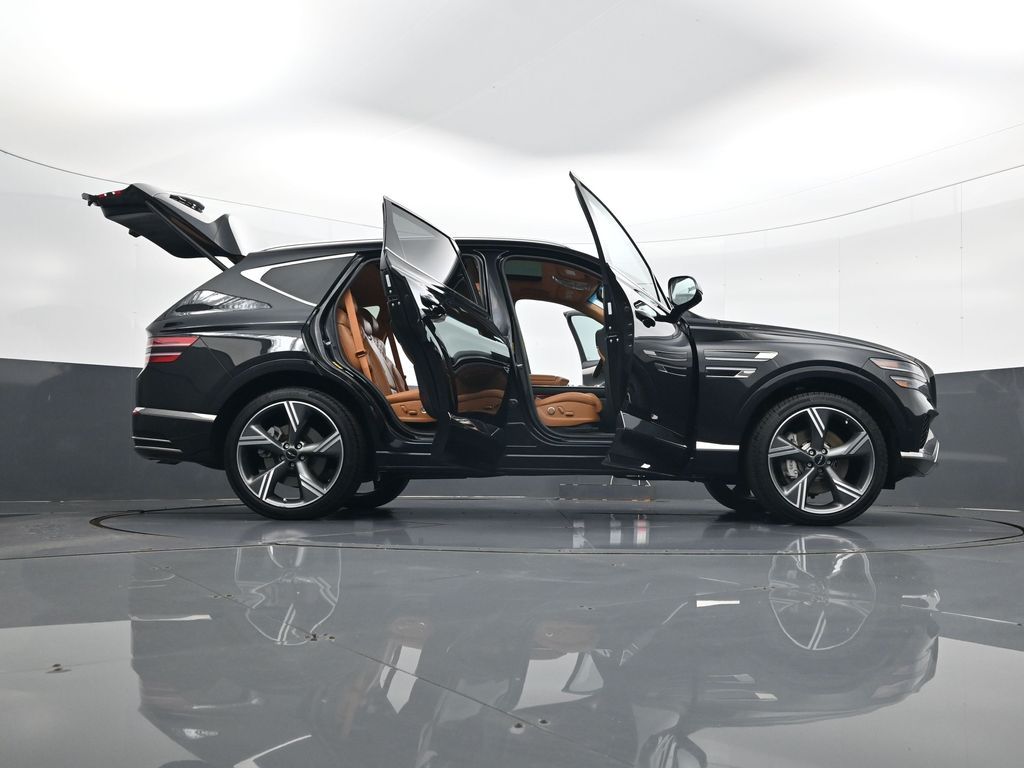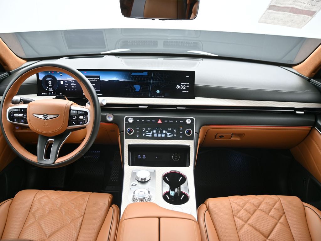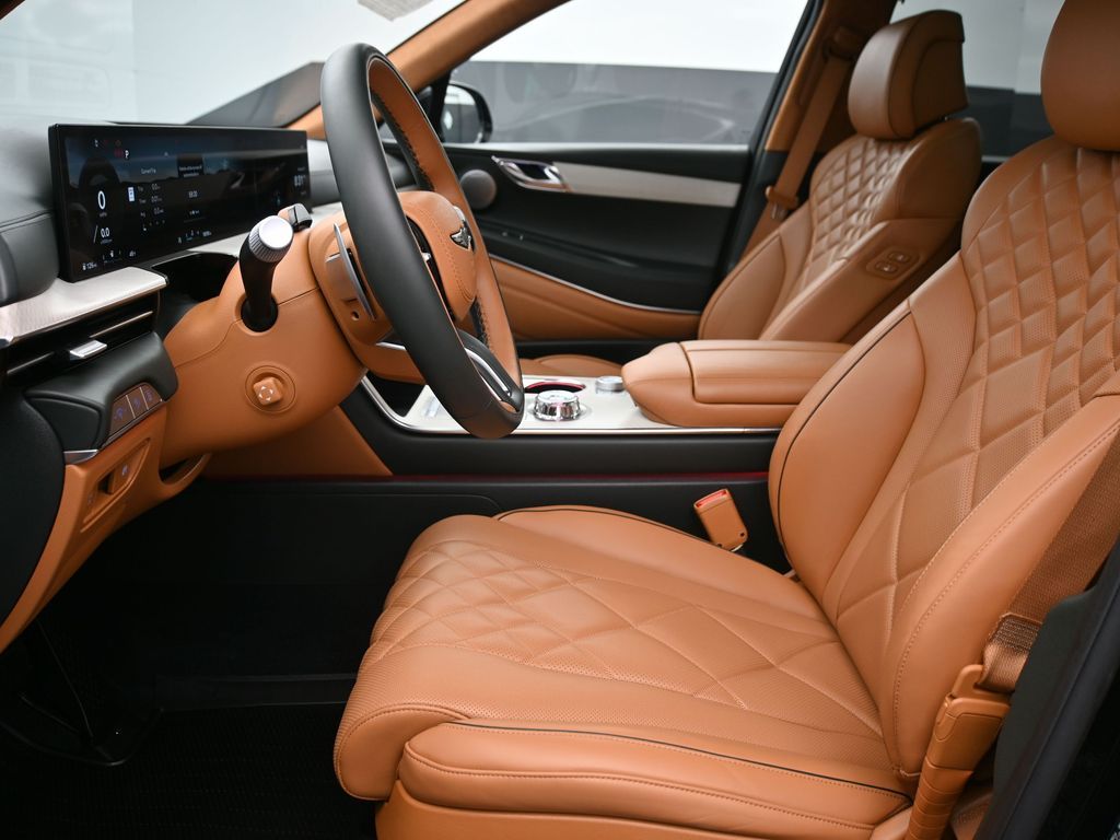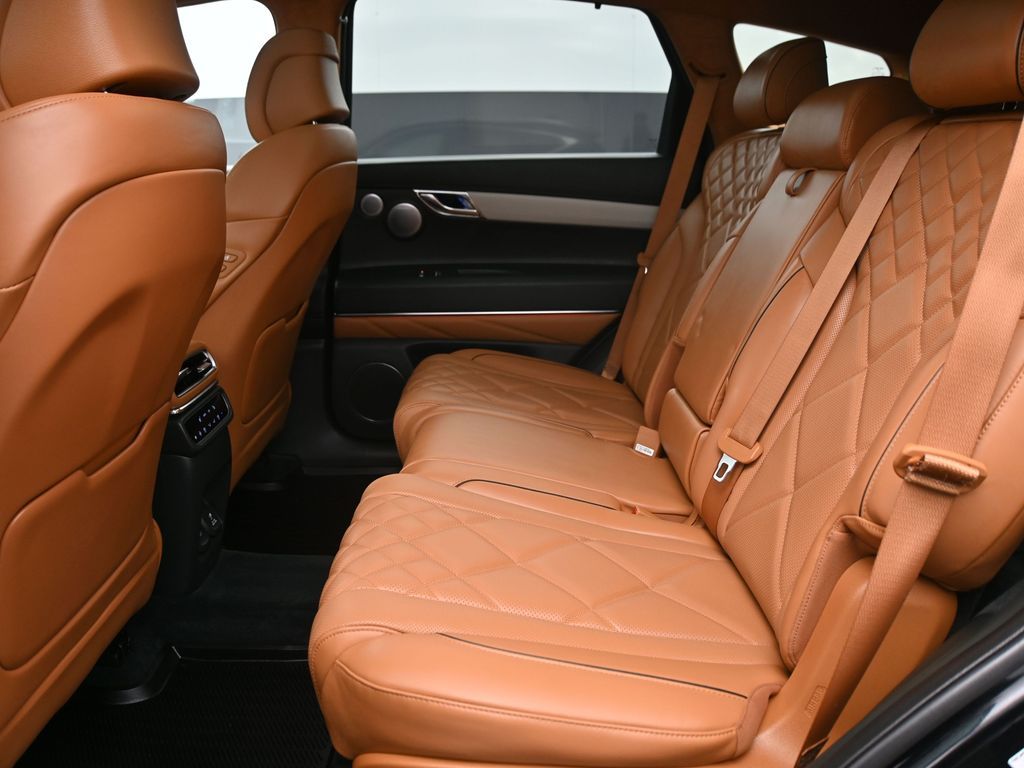 Option Group 01, 18 Speakers, 4-Wheel Disc Brakes, ABS brakes, Adaptive suspension, Air Conditioning, Alloy wheels, AM/FM radio: SiriusXM, Anti-whiplash front head restraints, Auto High-beam Headlights, Auto tilt-away steering wheel, Auto-dimming door mirrors, Auto-dimming Rear-View mirror, Automatic temperature control, Brake assist, Bumpers: body-color, Cargo Net, Compass, Delay-off headlights, Driver door bin, Driver vanity mirror, Dual front impact airbags, Dual front side impact airbags, Electronic Stability Control, Emergency communication system: Genesis Connected Services, Exterior Parking Camera Rear, First Aid Kit, Four wheel independent suspension, Fragrance Cartridge, Front anti-roll bar, Front Bucket Seats, Front Center Armrest, Front dual zone A/C, Front reading lights, Fully automatic headlights, Garage door transmitter: HomeLink, Genuine wood console insert, Genuine wood dashboard insert, Genuine wood door panel insert, Heads-Up Display, Heated & Ventilated Front Bucket Seats, Heated door mirrors, Heated front seats, Heated rear seats, Heated steering wheel, Illuminated entry, Knee airbag, Leather steering wheel, Low tire pressure warning, Memory seat, Nappa Leather Seating Surfaces, Navigation System, NFC Key Card, Occupant sensing airbag, Outside temperature display, Overhead airbag, Overhead console, Panic alarm, Passenger door bin, Passenger vanity mirror, Power door mirrors, Power driver seat, Power Liftgate, Power moonroof, Power passenger seat, Power steering, Power windows, Radio data system, Radio: AM/FM/SiriusXM/HD Bang & Olufsen Sound Sys, Rain sensing wipers, Rear air conditioning, Rear anti-roll bar, Rear reading lights, Rear seat center armrest, Rear side impact airbag, Rear window defroster, Rear window wiper, Remote keyless entry, Security system, Speed control, Speed-sensing steering, Speed-Sensitive Wipers, Split folding rear seat, Spoiler, Steering wheel memory, Steering wheel mounted audio controls, Tachometer, Telescoping steering wheel, Tilt steering wheel, Traction control, Trip computer, Turn signal indicator mirrors, Variably intermittent wipers, Ventilated front seats, Ventilated rear seats, and Wheels: 22" x 9.5J Dark Gray Matte Alloy.