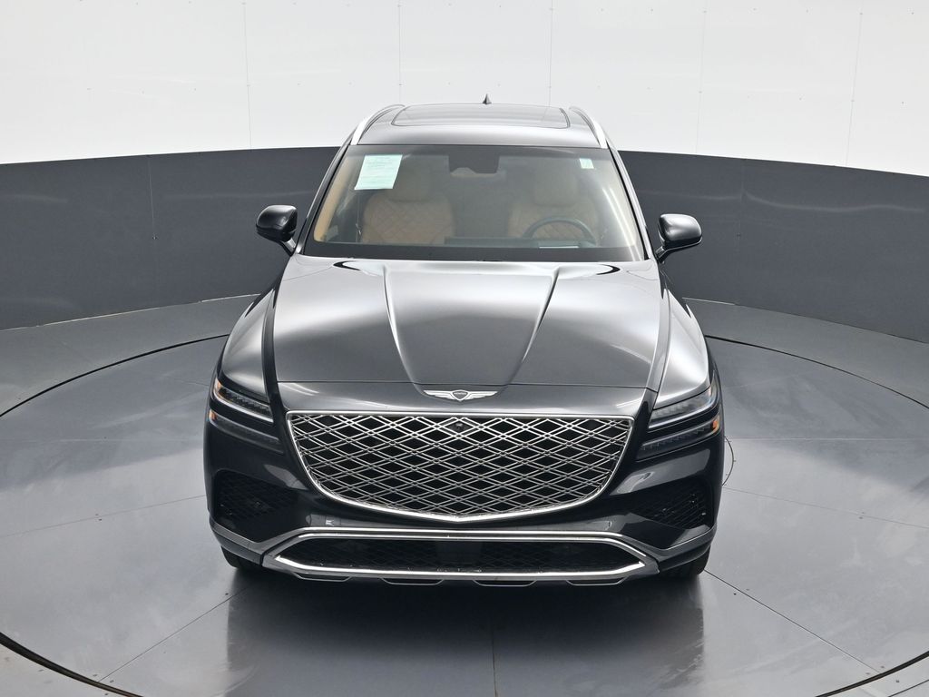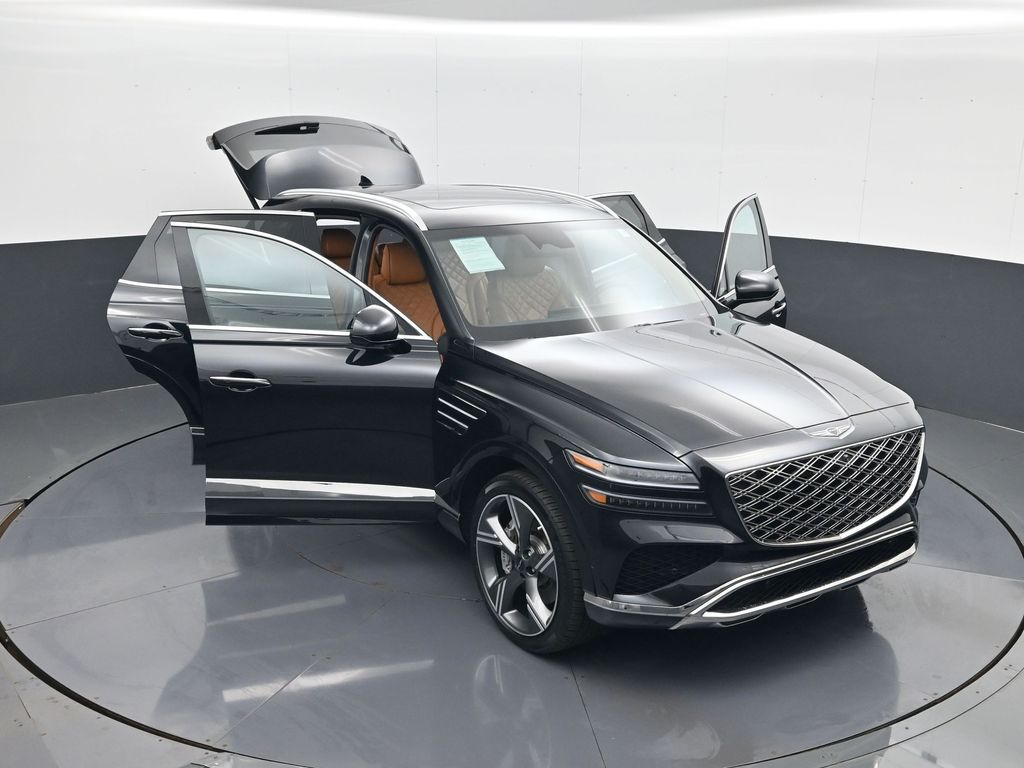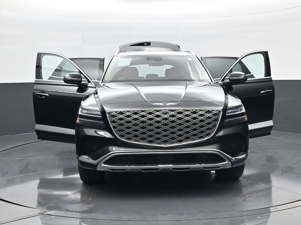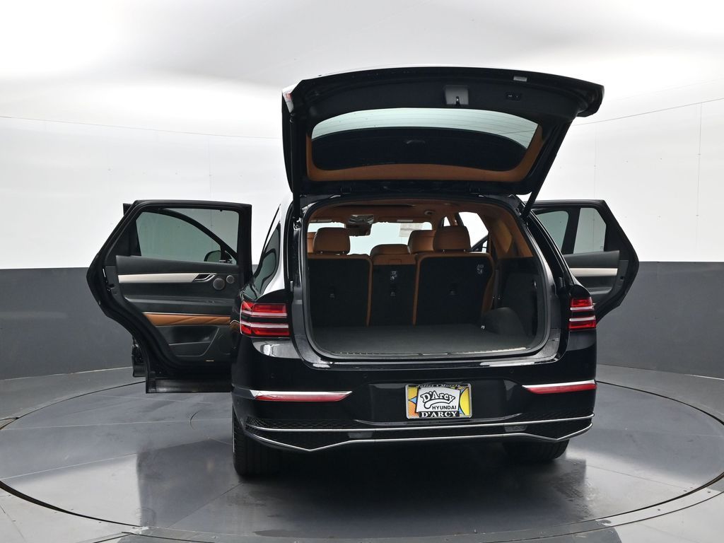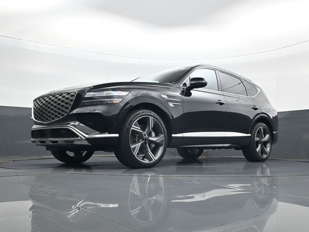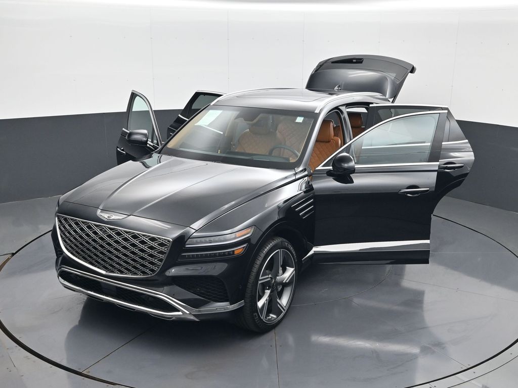Option Group 01, 18 Speakers, 4-Wheel Disc Brakes, ABS brakes, Adaptive suspension, Air Conditioning, Alloy wheels, AM/FM radio: SiriusXM, Anti-whiplash front head restraints, Auto High-beam Headlights, Auto tilt-away steering wheel, Auto-dimming door mirrors, Auto-dimming Rear-View mirror, Automatic temperature control, Brake assist, Bumpers: body-color, Cargo Net, Compass, Delay-off headlights, Driver door bin, Driver vanity mirror, Dual front impact airbags, Dual front side impact airbags, Electronic Stability Control, Emergency communication system: Genesis Connected Services, Exterior Parking Camera Rear, First Aid Kit, Four wheel independent suspension, Fragrance Cartridge, Front anti-roll bar, Front Bucket Seats, Front Center Armrest, Front dual zone A/C, Front reading lights, Fully automatic headlights, Garage door transmitter: HomeLink, Genuine wood console insert, Genuine wood dashboard insert, Genuine wood door panel insert, Heads-Up Display, Heated & Ventilated Front Bucket Seats, Heated door mirrors, Heated front seats, Heated rear seats, Heated steering wheel, Illuminated entry, Knee airbag, Leather steering wheel, Low tire pressure warning, Memory seat, Nappa Leather Seating Surfaces, Navigation System, NFC Key Card, Occupant sensing airbag, Outside temperature display, Overhead airbag, Overhead console, Panic alarm, Passenger door bin, Passenger vanity mirror, Power door mirrors, Power driver seat, Power Liftgate, Power moonroof, Power passenger seat, Power steering, Power windows, Radio data system, Radio: AM/FM/SiriusXM/HD Bang & Olufsen Sound Sys, Rain sensing wipers, Rear air conditioning, Rear anti-roll bar, Rear reading lights, Rear seat center armrest, Rear side impact airbag, Rear window defroster, Rear window wiper, Remote keyless entry, Security system, Speed control, Speed-sensing steering, Speed-Sensitive Wipers, Split folding rear seat, Spoiler, Steering wheel memory, Steering wheel mounted audio controls, Tachometer, Telescoping steering wheel, Tilt steering wheel, Traction control, Trip computer, Turn signal indicator mirrors, Variably intermittent wipers, Ventilated front seats, Ventilated rear seats, and Wheels: 22" x 9.5J Dark Gray Matte Alloy.
