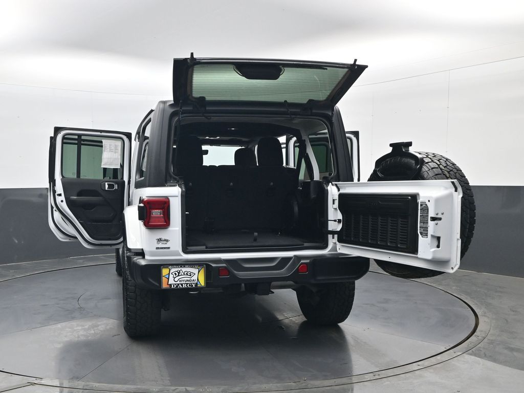 Cold Weather Group (Heated Front Seats and Heated Steering Wheel), Dual Top Group (Premium Black Sunrider Soft Top w/Dual Top Group), LED Lighting Group (Daytime Running Lamps LED Accents, Front LED Fog Lamps, LED Premium Reflector Headlamps, and LED Taillamps), Quick Order Package 25G, Trailer Tow & HD Electrical Group (240 Amp Alternator, 7 & 4 Pin Wiring Harness, 700 Amp Maintenance Free Battery, Auxiliary Switches, and Class II Receiver Hitch), 110 MPH Vehicle Max Speed Calibration, 3.45 Rear Axle Ratio, 4-Wheel Disc Brakes, 9 Speakers, ABS brakes, Air Conditioning, Alloy wheels, AM/FM radio: SiriusXM, Apple CarPlay/Android Auto, Auto-dimming Rear-View mirror, Automatic temperature control, Aux Battery, Brake assist, Cloth Low-Back Bucket Seats, Compass, Corning Gorilla Glass, Delay-off headlights, Driver door bin, Driver vanity mirror, Dual front impact airbags, Dual front side impact airbags, Electronic Stability Control, Emergency communication system: SiriusXM Guardian, Engine Oil Cooler, Front anti-roll bar, Front Bucket Seats, Front Center Armrest w/Storage, Front dual zone A/C, Front fog lights, Front reading lights, Fully automatic headlights, Garage door transmitter, Heated door mirrors, Heavy Duty Suspension w/Gas Shocks, Illuminated entry, Integrated roll-over protection, Leather steering wheel, Low tire pressure warning, Navigation System, Non-Lock Fuel Cap w/o Discriminator, Occupant sensing airbag, Outside temperature display, Panic alarm, ParkView Rear Back-Up Camera, Passenger door bin, Passenger vanity mirror, Power door mirrors, Power steering, Power windows, Radio data system, Radio: Uconnect 4C Nav w/8.4" Display, Rear anti-roll bar, Rear reading lights, Remote keyless entry, Remote Start System, Security system, Speed control, Split folding rear seat, Steering wheel mounted audio controls, Stop-Start Dual Battery System, Tachometer, Telescoping steering wheel, Tilt steering wheel, Traction control, Trip computer, Variably intermittent wipers, Voltmeter, and Wheels: 18" x 7.5" Polished w/Gray Spokes.