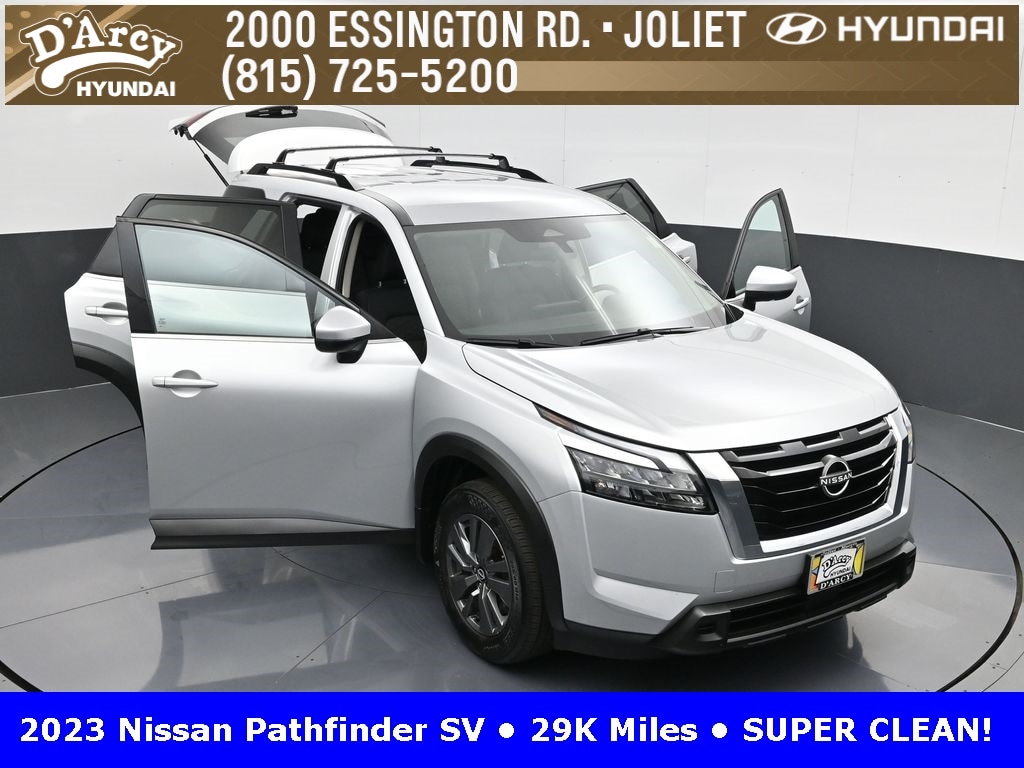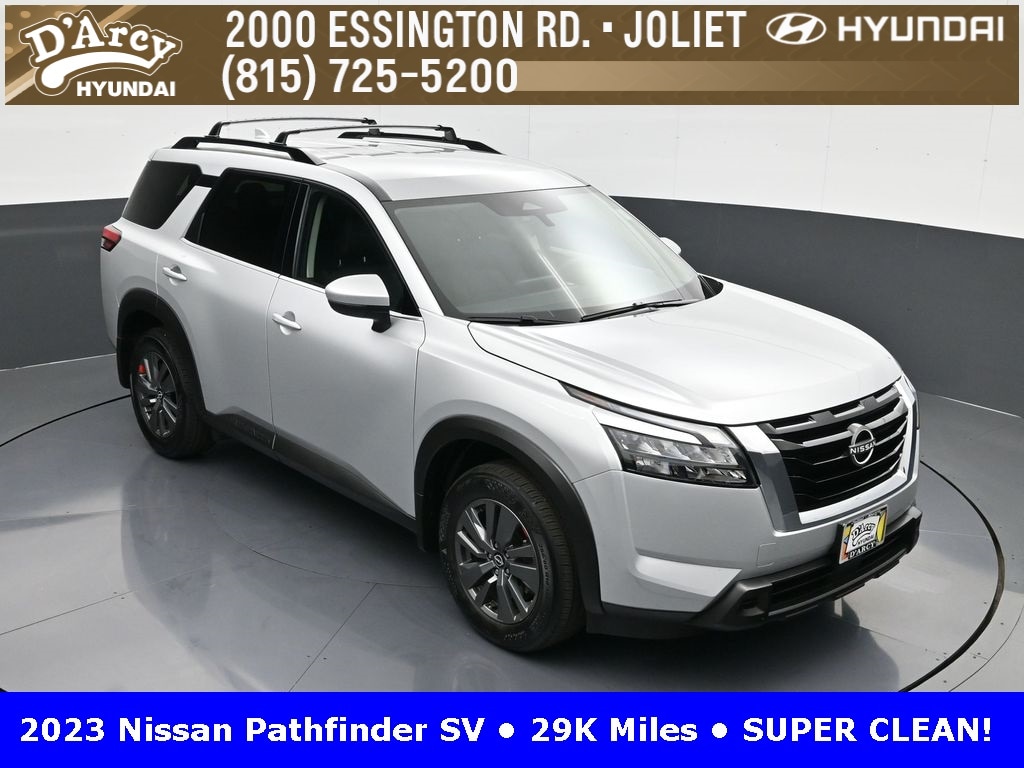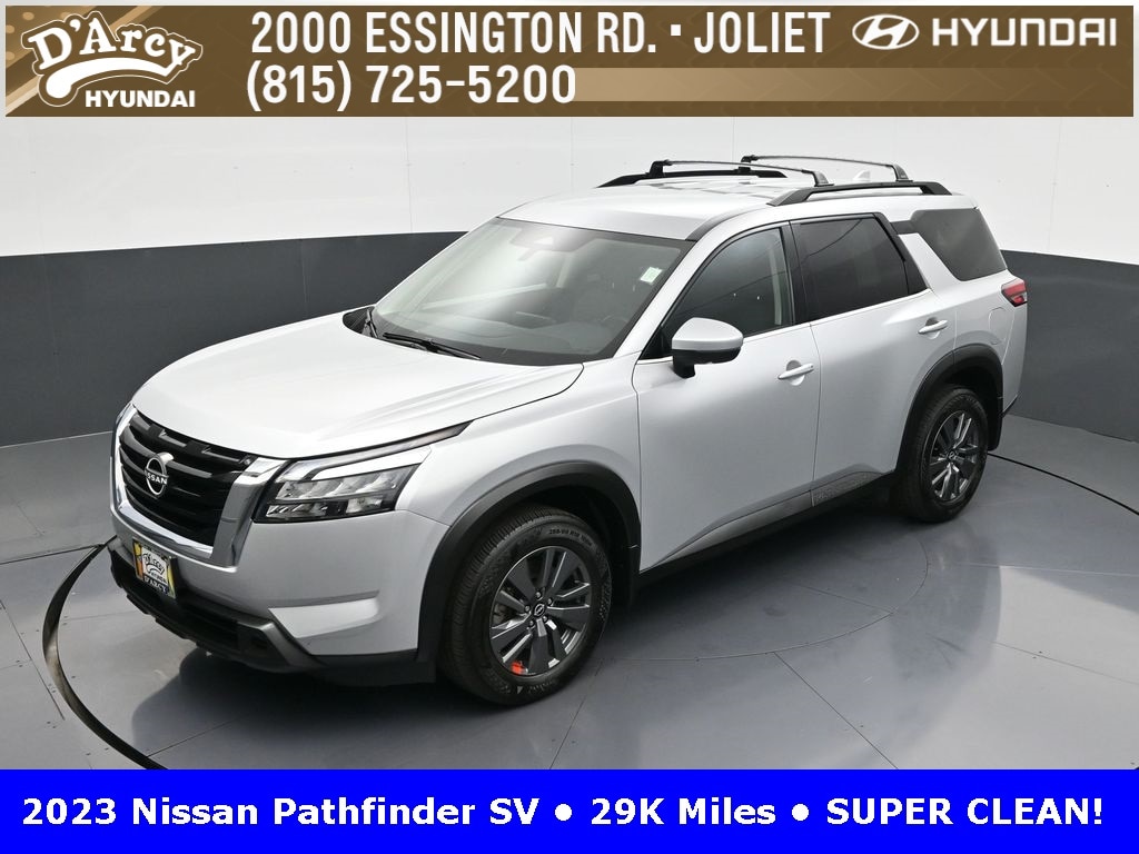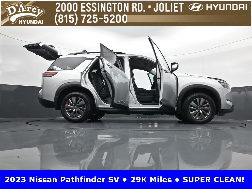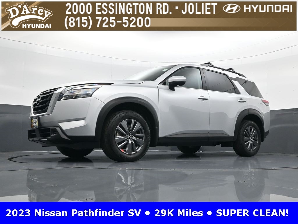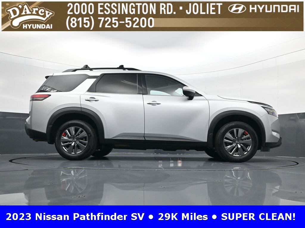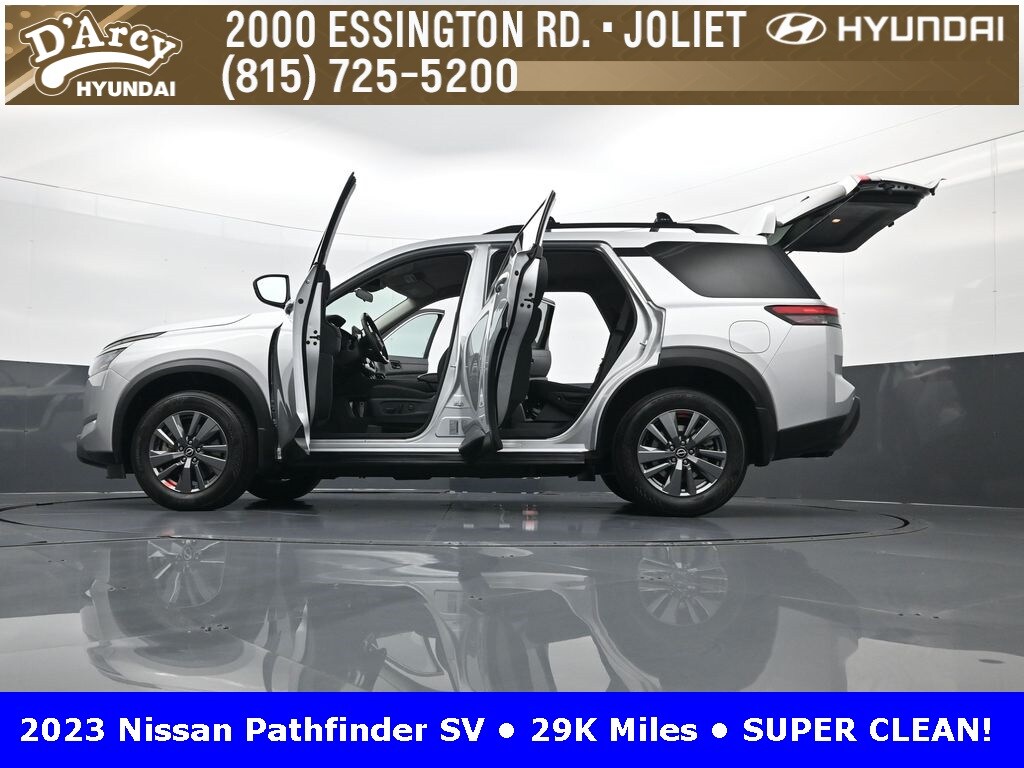 ONE OWNER LOCAL TRADE!, LOW MILES!, GREAT VEHICLE HISTORY!, REMAINING FULL FACTORY WARRANTY!, FULLY SERVICED AND READY TO GO!. Brilliant Silver Metallic 2023 Nissan Pathfinder SV FWD 9-Speed Automatic V6