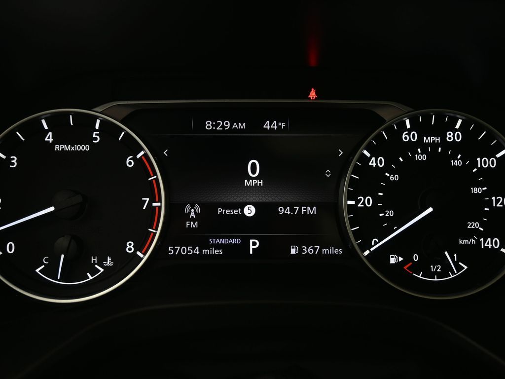SV Premium B Package (Heated Driver & Front Passenger Seats, Heated Leather Wrapped Steering Wheel, Leatherette Door Trim Inserts w/Stitch, Panoramic Moonroof, Power Liftgate, PRIMATEX Leatherette Seat Trim, Rear Door Sunshades, Rear Personal Lights, Security Alarm, and Silver Painted Roof Rails), 18" Aluminum Alloy Wheels, 4-Wheel Disc Brakes, 5.604 Axle Ratio, 6 Speakers, ABS brakes, Air Conditioning, Alloy wheels, AM/FM Radio, AM/FM radio: SiriusXM, Auto High-beam Headlights, Automatic temperature control, Black Splash Guards (Set of 4), Brake assist, Bumpers: body-color, Chrome Rear Bumper Protector, Cloth Seat Trim, Delay-off headlights, Driver door bin, Driver vanity mirror, Dual front impact airbags, Dual front side impact airbags, Electronic Stability Control, Emergency communication system: NissanConnect Services, Floor Mats w/1-Piece Cargo Area Protector, Four wheel independent suspension, Front anti-roll bar, Front Bucket Seats, Front Center Armrest, Front dual zone A/C, Front reading lights, Fully automatic headlights, Heated door mirrors, Illuminated entry, Illuminated Kick Plates, Knee airbag, Low tire pressure warning, NissanConnect featuring Apple CarPlay and Android Auto, Occupant sensing airbag, Outside temperature display, Overhead airbag, Overhead console, Panic alarm, Passenger door bin, Passenger vanity mirror, Power door mirrors, Power driver seat, Power steering, Power windows, Radio data system, Rear anti-roll bar, Rear Parking Sensors, Rear seat center armrest, Rear side impact airbag, Rear window defroster, Rear window wiper, Remote keyless entry, Speed control, Speed-Sensitive Wipers, Split folding rear seat, Spoiler, Steering wheel mounted audio controls, Tachometer, Telescoping steering wheel, Tilt steering wheel, Traction control, Trip computer, USB Charging Cable Set - Nissan, and Variably intermittent wipers.