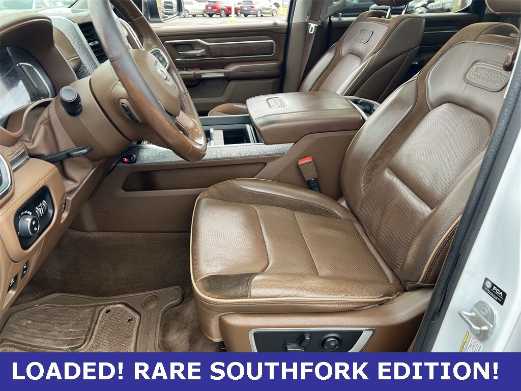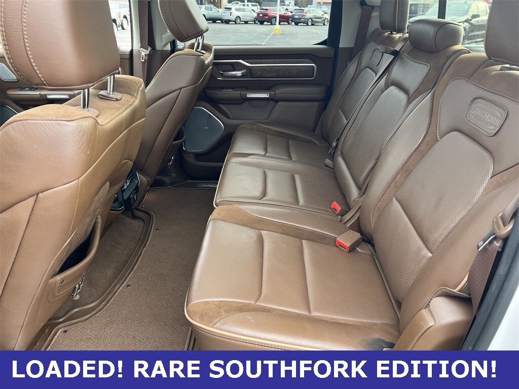 Adaptive Cruise Control w/Stop & Go, Blind Spot & Cross Path Detection, Digital Rearview Mirror, harman/kardon 19 Speaker Premium Sound, Heads-Up Display, Instrument Cluster Theme 6 - Limited Longhorn, Lane Keep Assist, LED CHMSL Lamp, Longhorn Level 1 Equipment Group, MOPAR Bright Pedal Kit, MOPAR Spray In Bedliner, Multi-Function Tailgate, Parallel & Perp Park Assist w/Stop, ParkSense Front/Rear Park Assist w/Stop, Pedestrian Emergency Braking, Pick-Up Box Lighting, Power Running Boards, Premium Leather Bucket Seats, Quick Order Package 27K Longhorn, Quick Order Package 28K Longhorn (DISC), Southfork Edition Group, Surround View Camera System, Tailgate Ajar Warning Lamp, Wireless Charging Pad.