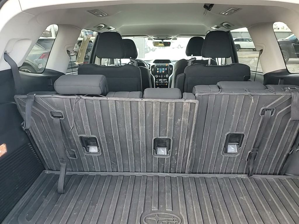 This vehicle comes equipped with Convenience Package (Auto-Dimming Rear View Compass Mirror w/HomeLink, Keyless Access w/Push-Button Start, Power Rear Gate w/Automatic Close & Height Memory, and Reverse Automatic Braking (RAB) System), Popular Package #4 (3rd Row Bench Rear Seatback Protector, All-Weather Floor Liners, Auto-Dimming Exterior Mirror w/Approach Light, Cargo Cover, Cargo Tray, and Rear Bumper Cover), 3rd row seats: bench, 4-Wheel Disc Brakes, 6 Speakers, ABS brakes, Air Conditioning, Alloy wheels, AM/FM radio: SiriusXM, Auto High-beam Headlights, Automatic temperature control, Axle Ratio: 4.44, Brake assist, Bumpers: body-color, CD player, Delay-off headlights, Driver door bin, Driver vanity mirror, Dual front impact airbags, Dual front side impact airbags, Electronic Stability Control, Emergency communication system: STARLINK Safety and Security (Subscription Required), Exterior Parking Camera Rear, Four wheel independent suspension, Front anti-roll bar, Front Bucket Seats, Front Center Armrest, Front dual zone A/C, Front reading lights, Fully automatic headlights, Heated door mirrors, Heated Front Bucket Seats, Heated front seats, Illuminated entry, Knee airbag, Low tire pressure warning, Occupant sensing airbag, Outside temperature display, Overhead airbag, Overhead console, Panic alarm, Passenger door bin, Passenger vanity mirror, Power door mirrors, Power driver seat, Power steering, Power windows, Radio data system, Radio: Subaru STARLINK 8.0" Multimedia Plus System, Rear air conditioning, Rear anti-roll bar, Rear reading lights, Rear window defroster, Rear window wiper, Reclining 3rd row seat, Remote keyless entry, Security system, Speed control, Spill Resistant Coated Cloth Upholstery, Split folding rear seat, Spoiler, STARLINK/Apple CarPlay/Android Auto, Steering wheel mounted audio controls, Tachometer, Telescoping steering wheel, Tilt steering wheel, Traction control, Trip computer, Variably intermittent wipers, and Wheels: 18" x 7.5 J Gray Alloy w/Machine Finish